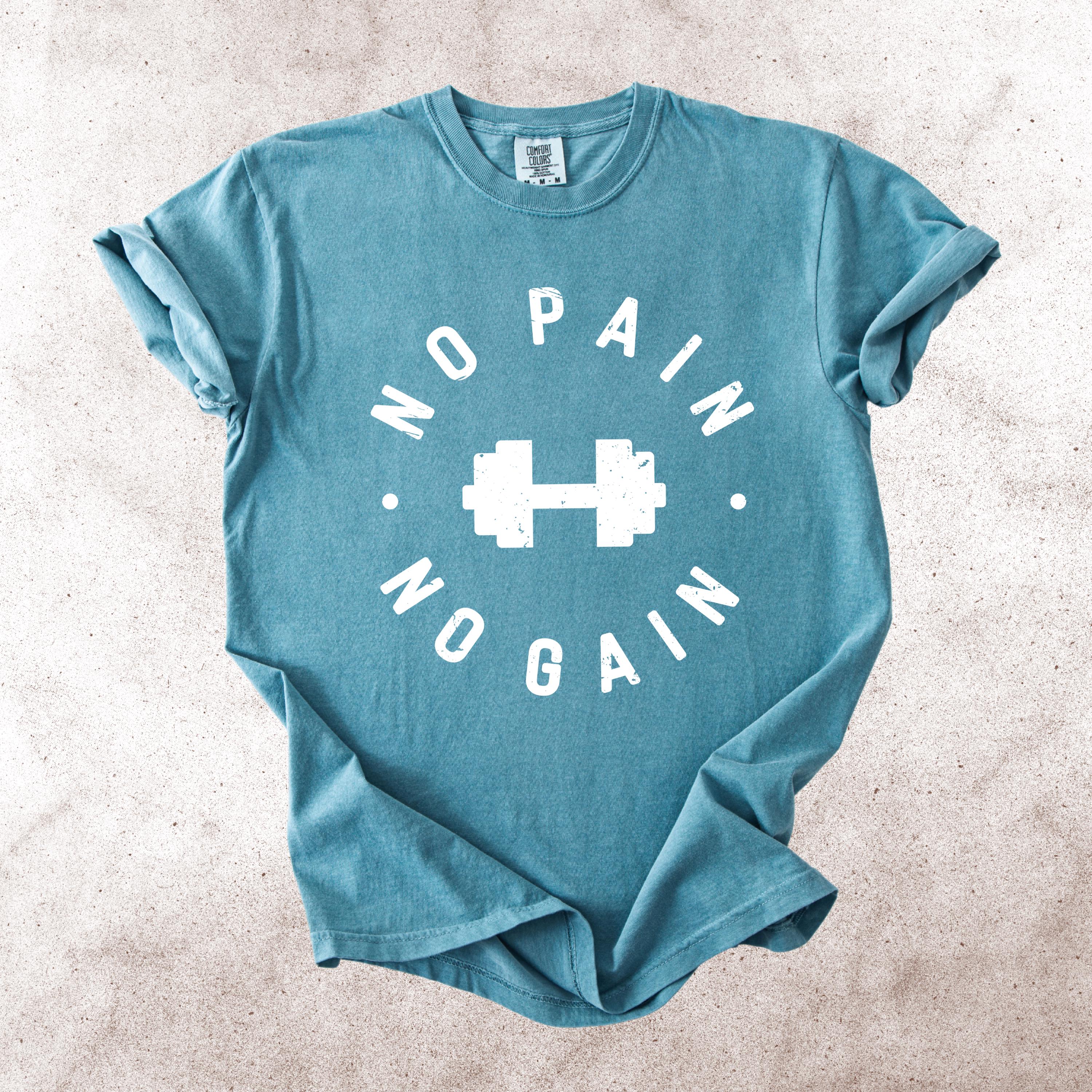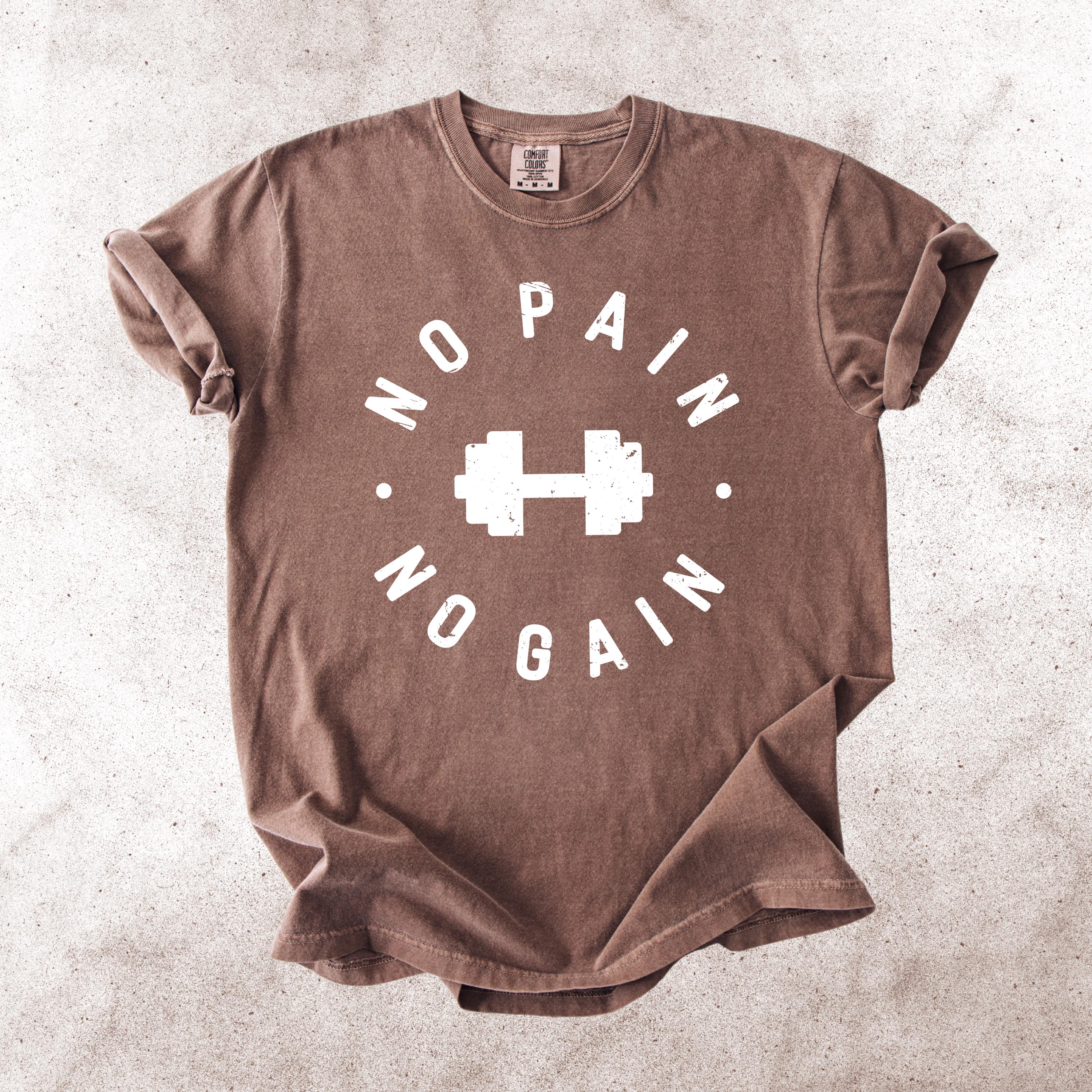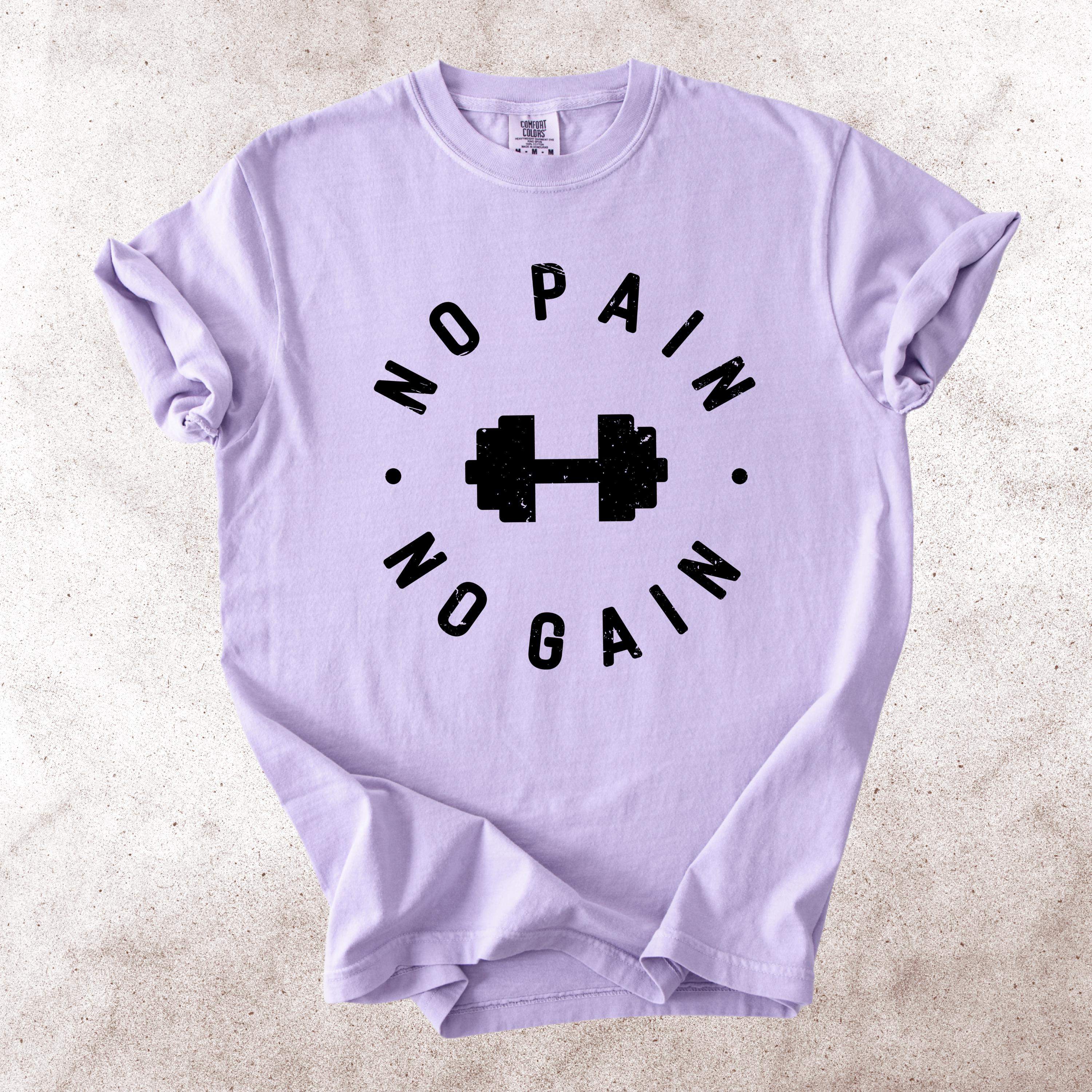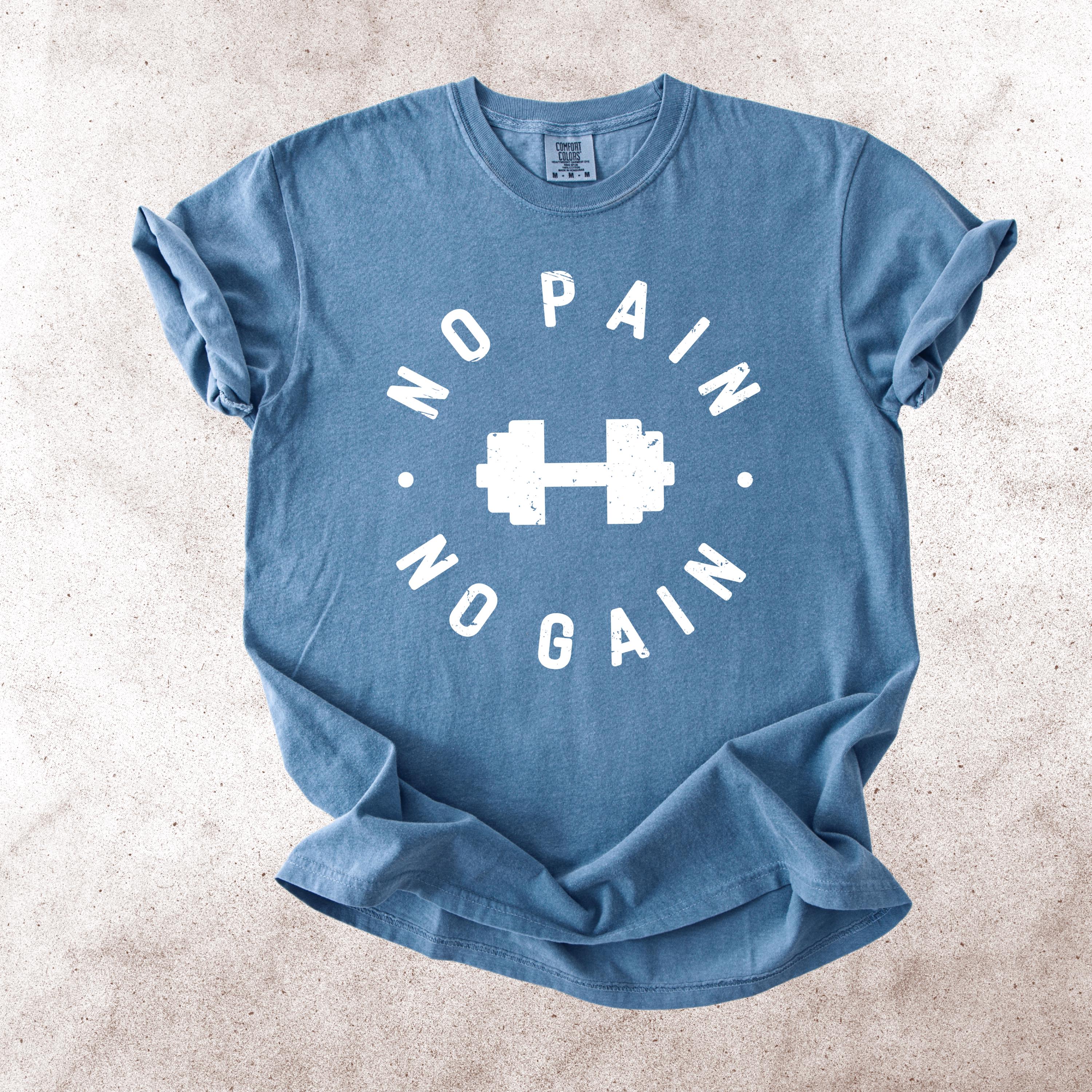 This No Pain No Gain Comfort Colors tee is designed for true fitness lovers who push their limits every single day. Featuring a bold dumbbell graphic and a vintage distressed font, this design delivers a clean yet powerful gym aesthetic.