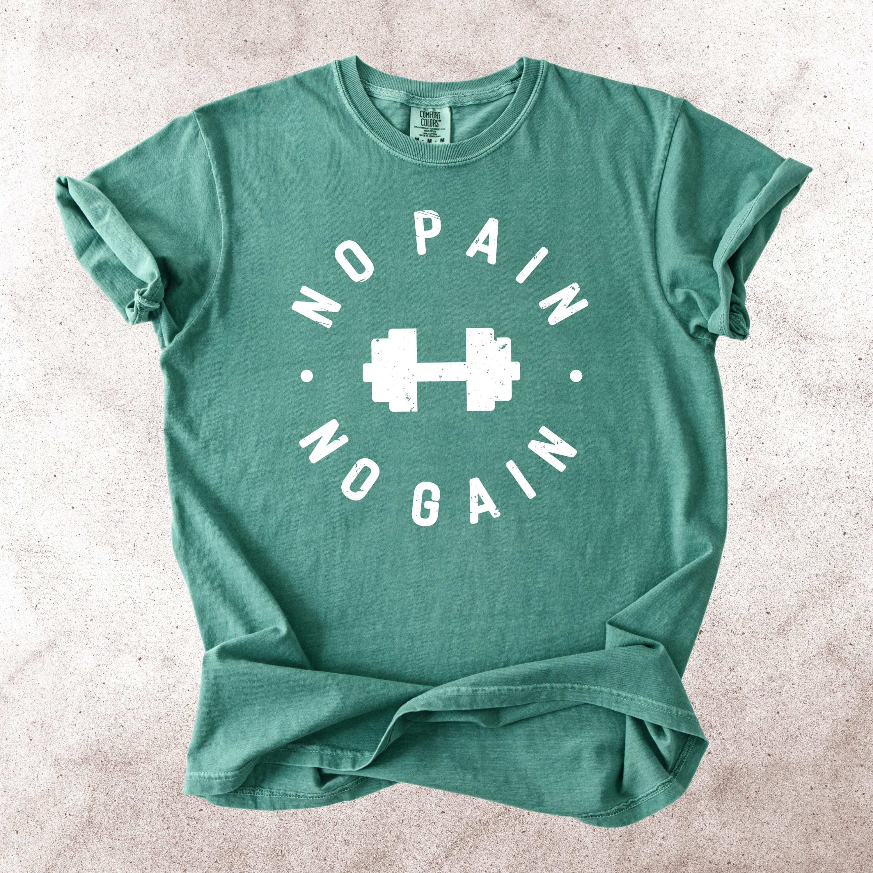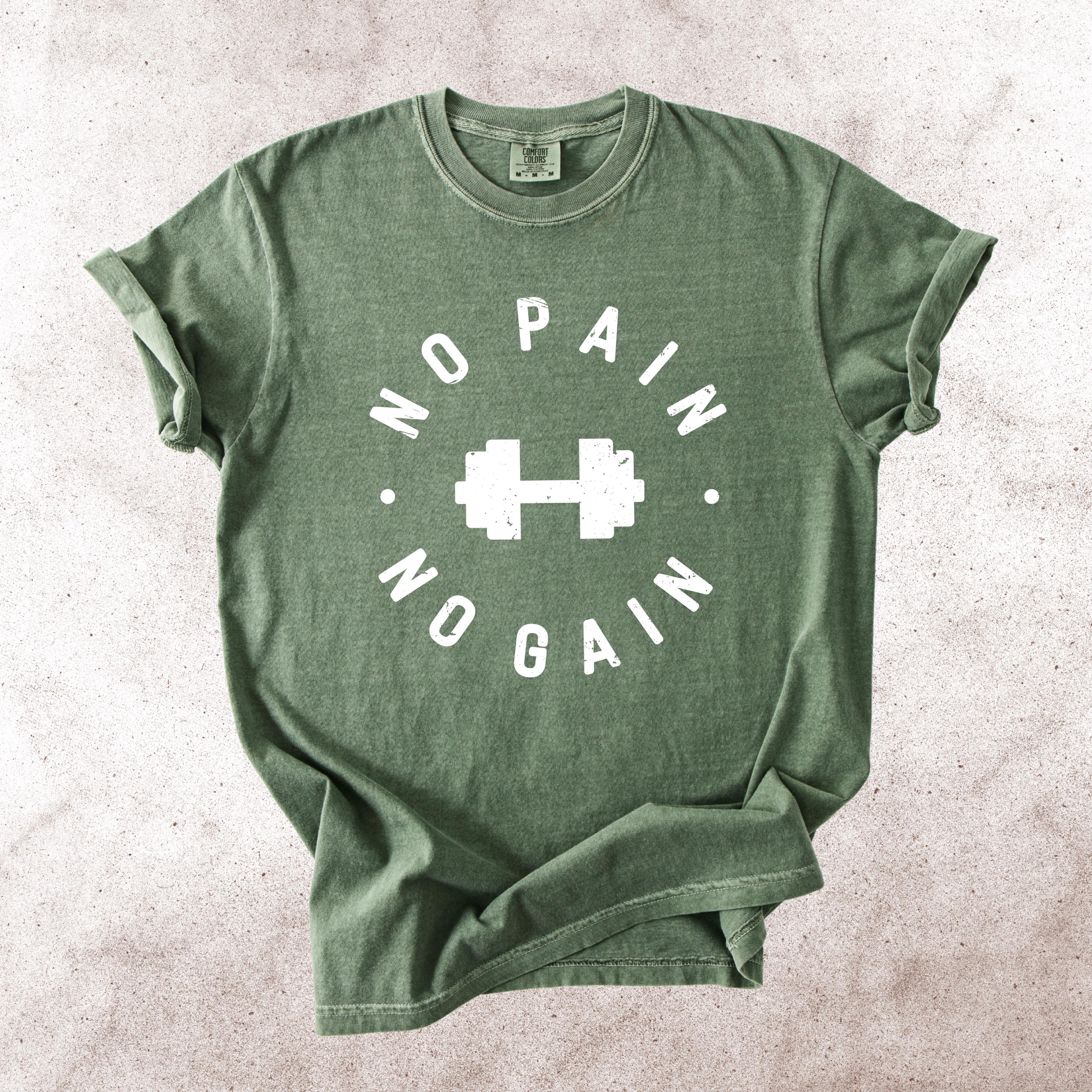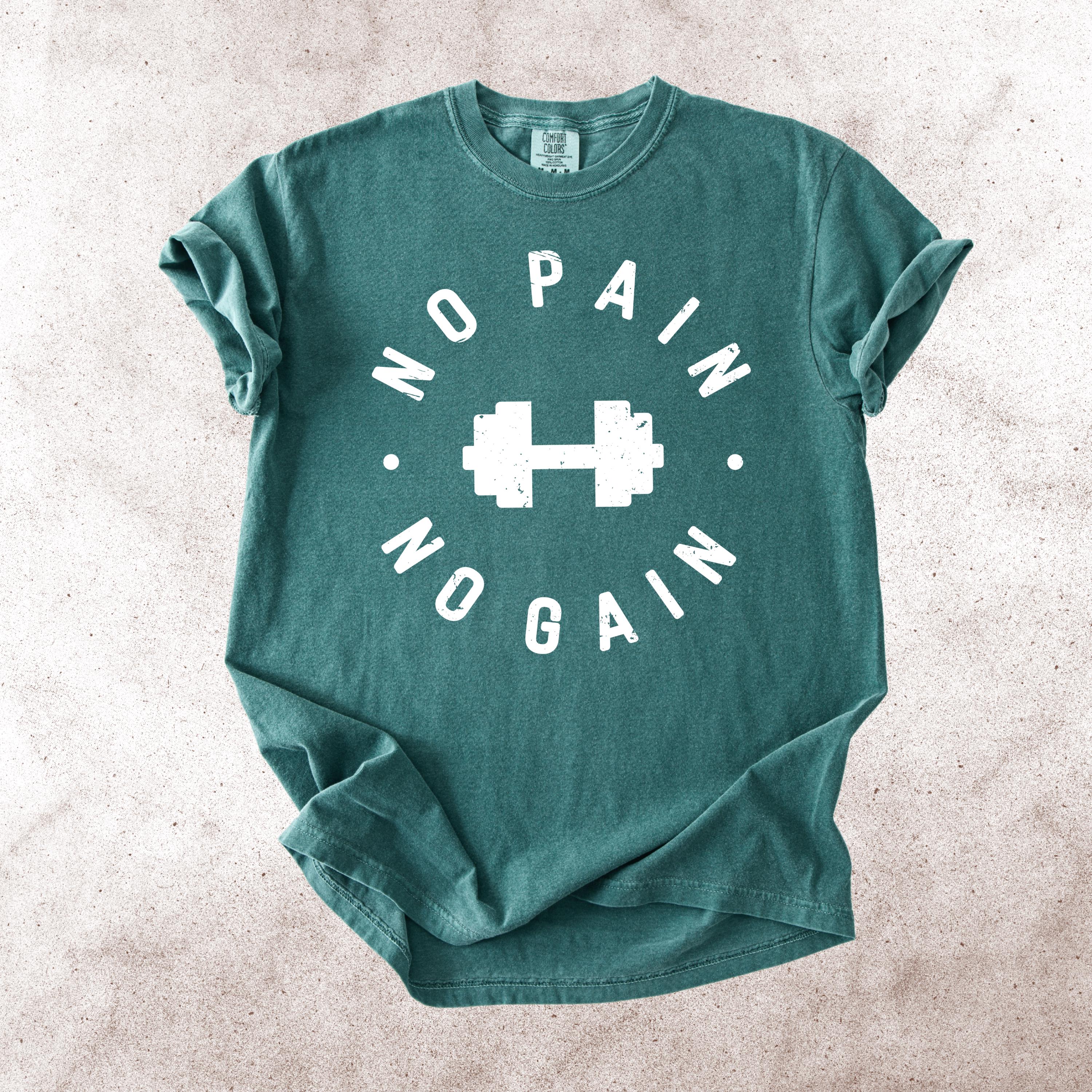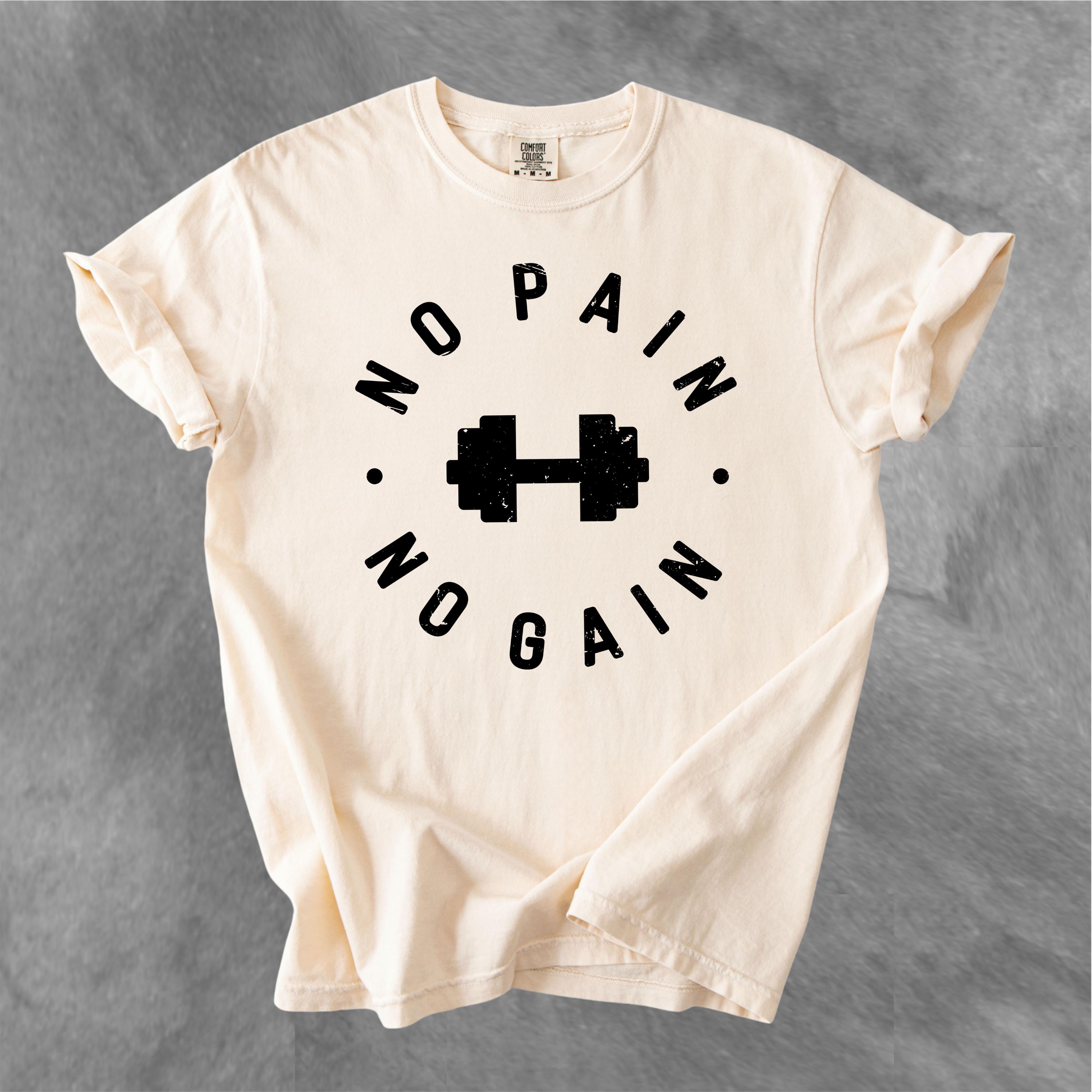 This No Pain No Gain Comfort Colors tee is designed for true fitness lovers who push their limits every single day. Featuring a bold dumbbell graphic and a vintage distressed font, this design delivers a clean yet powerful gym aesthetic.