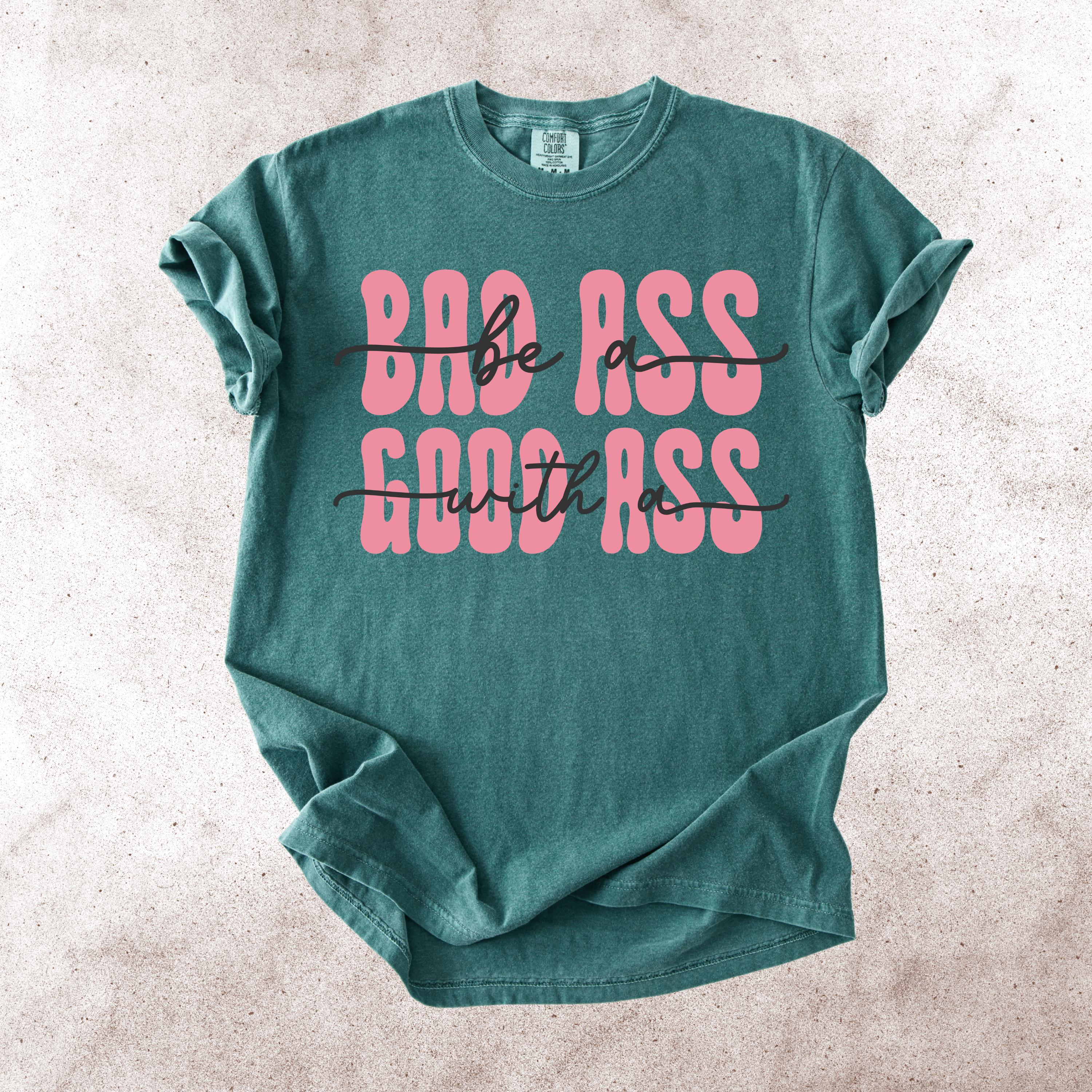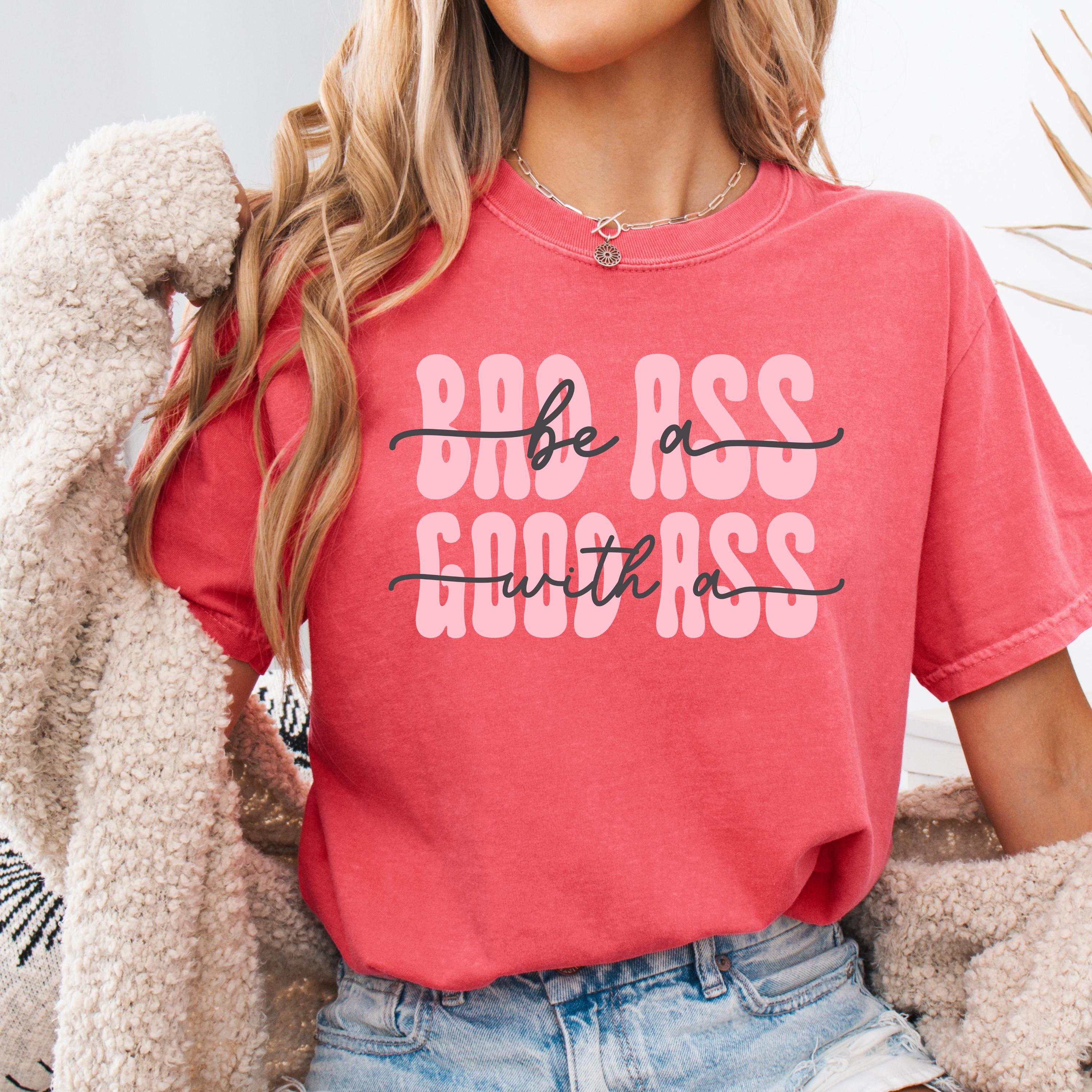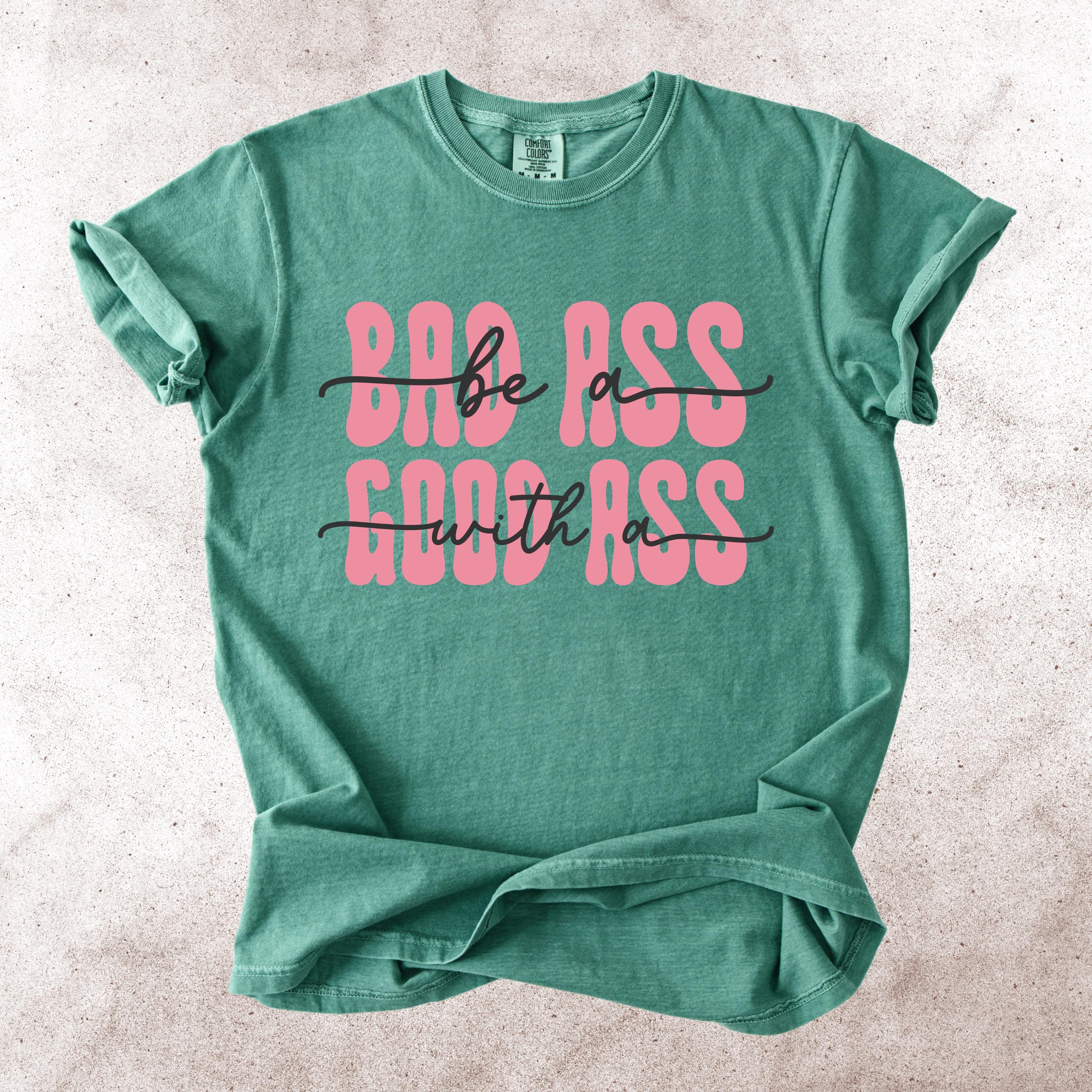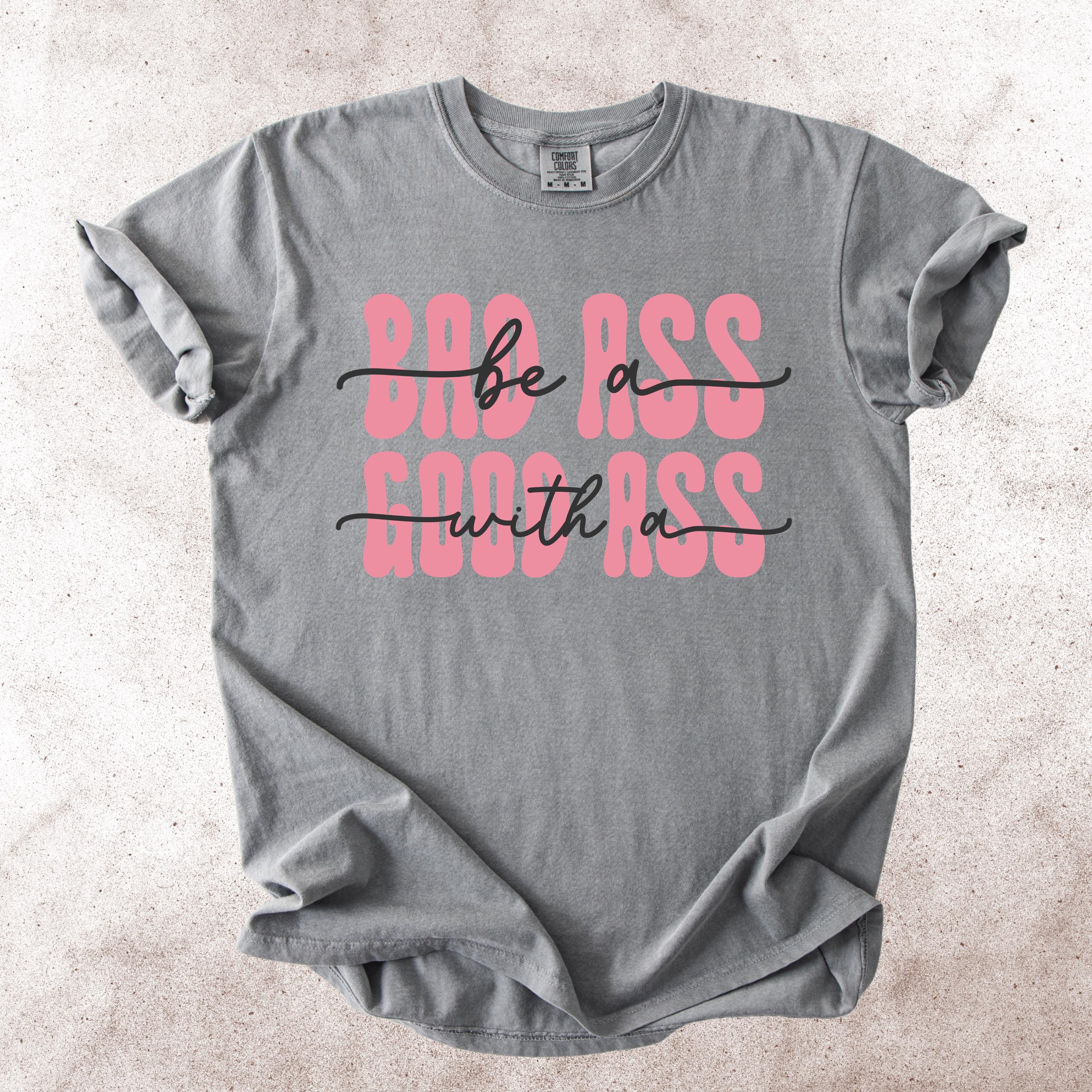 This Be a Bad Ass Get a Good Ass Comfort Colors tee is made for women who take their workouts seriously while keeping their style fun and confident.