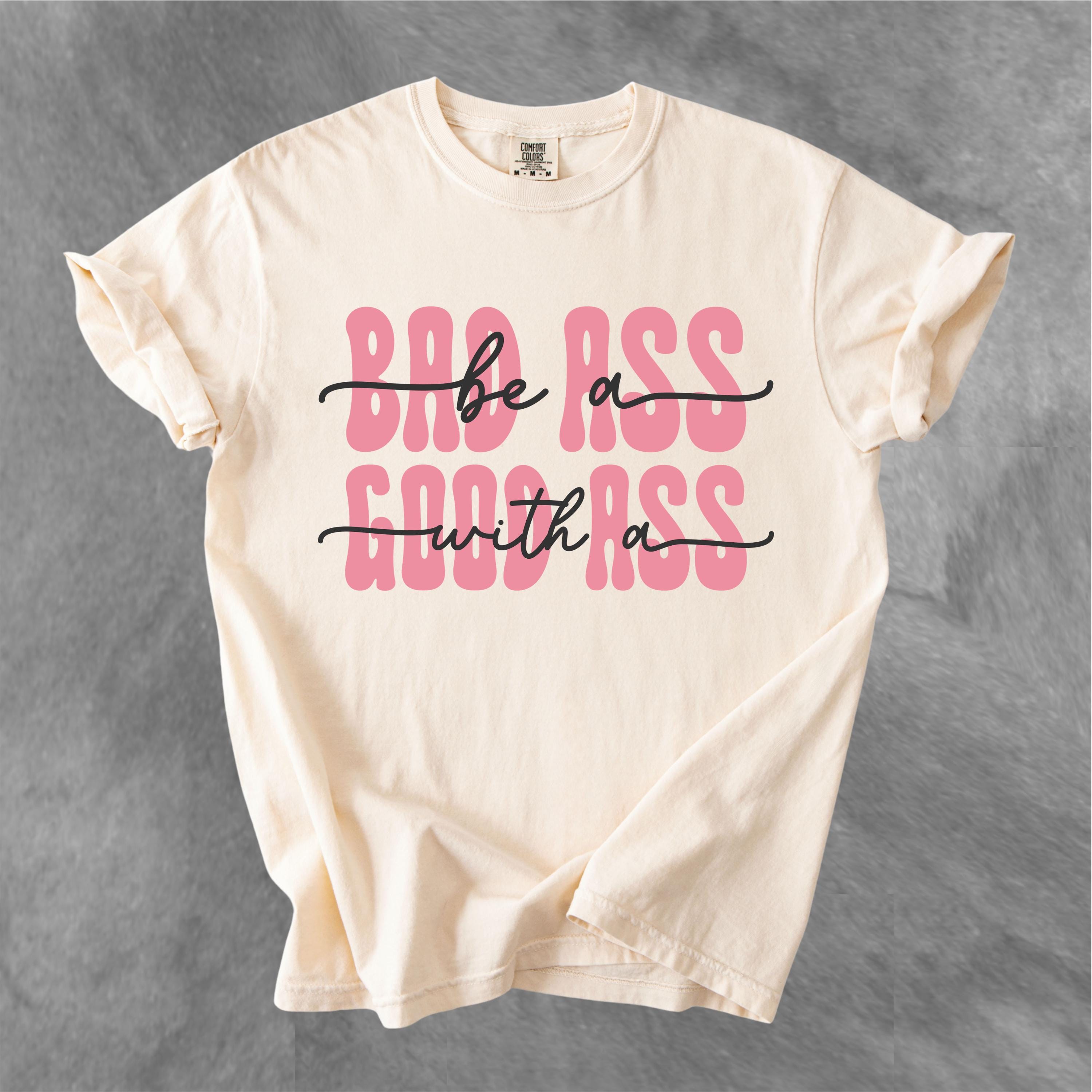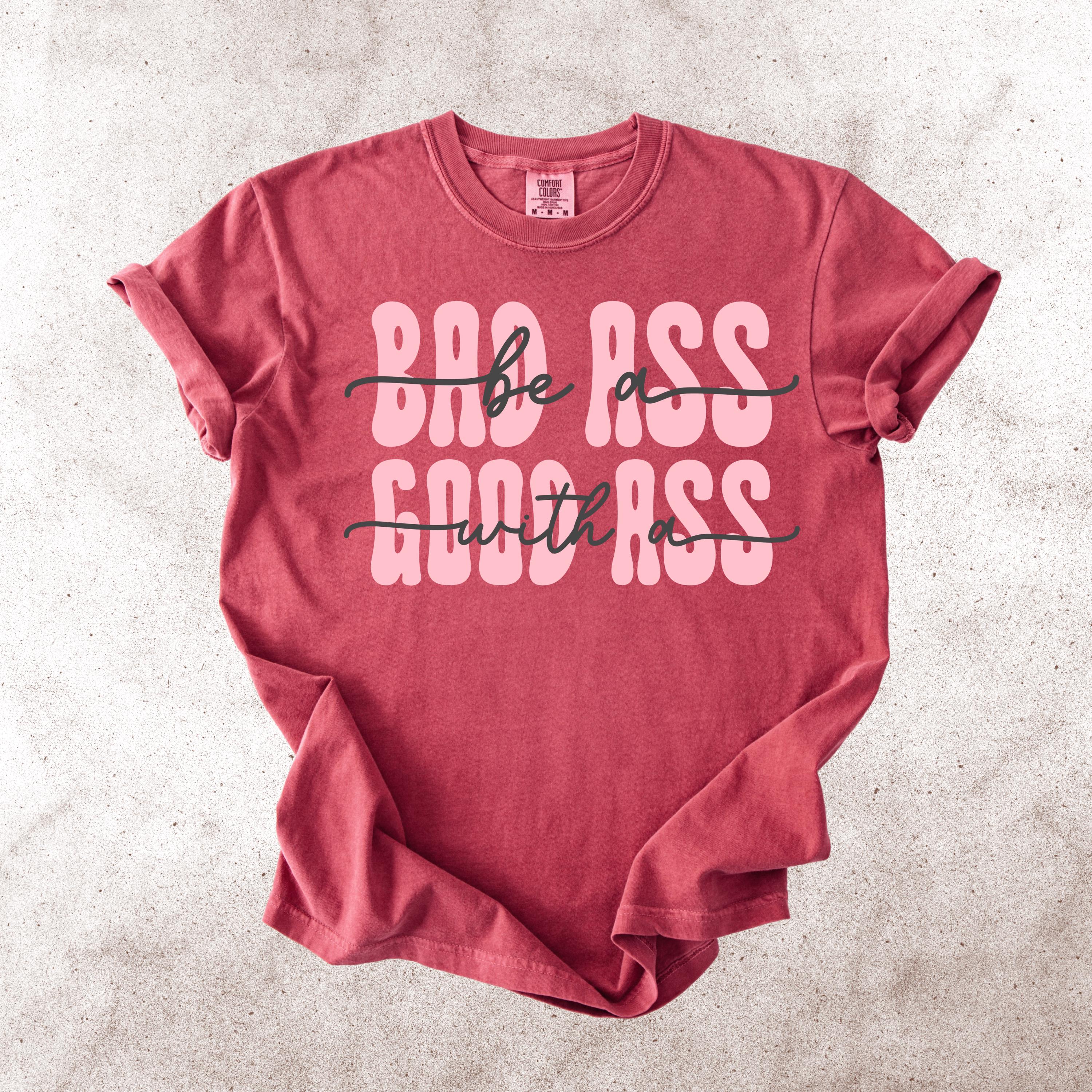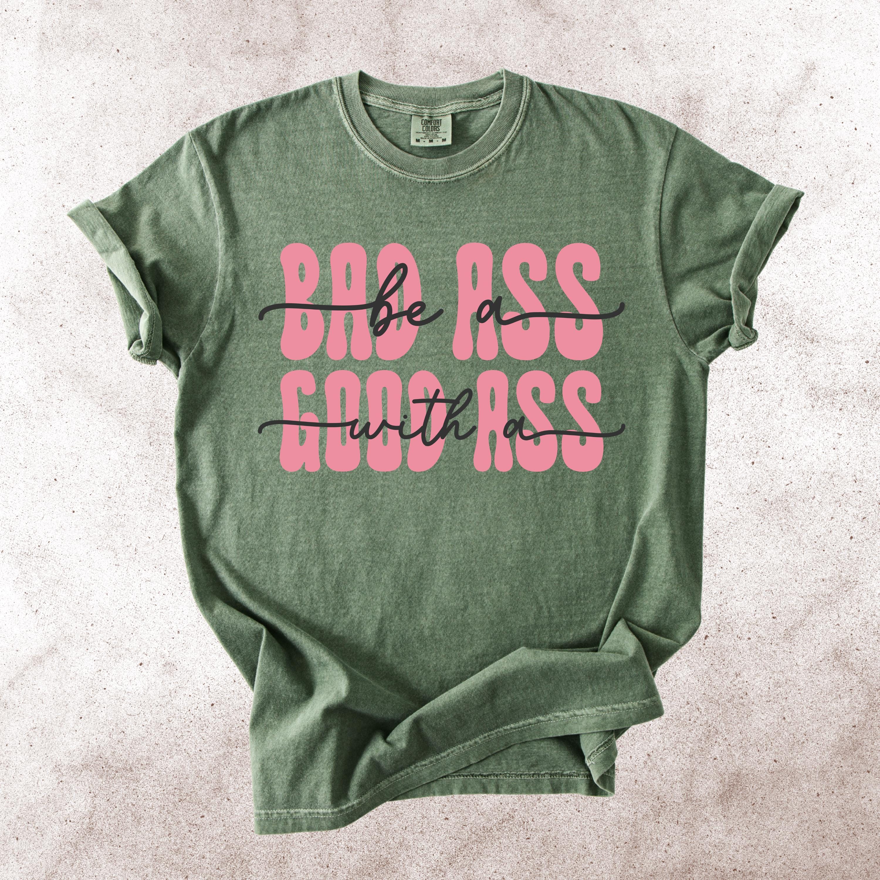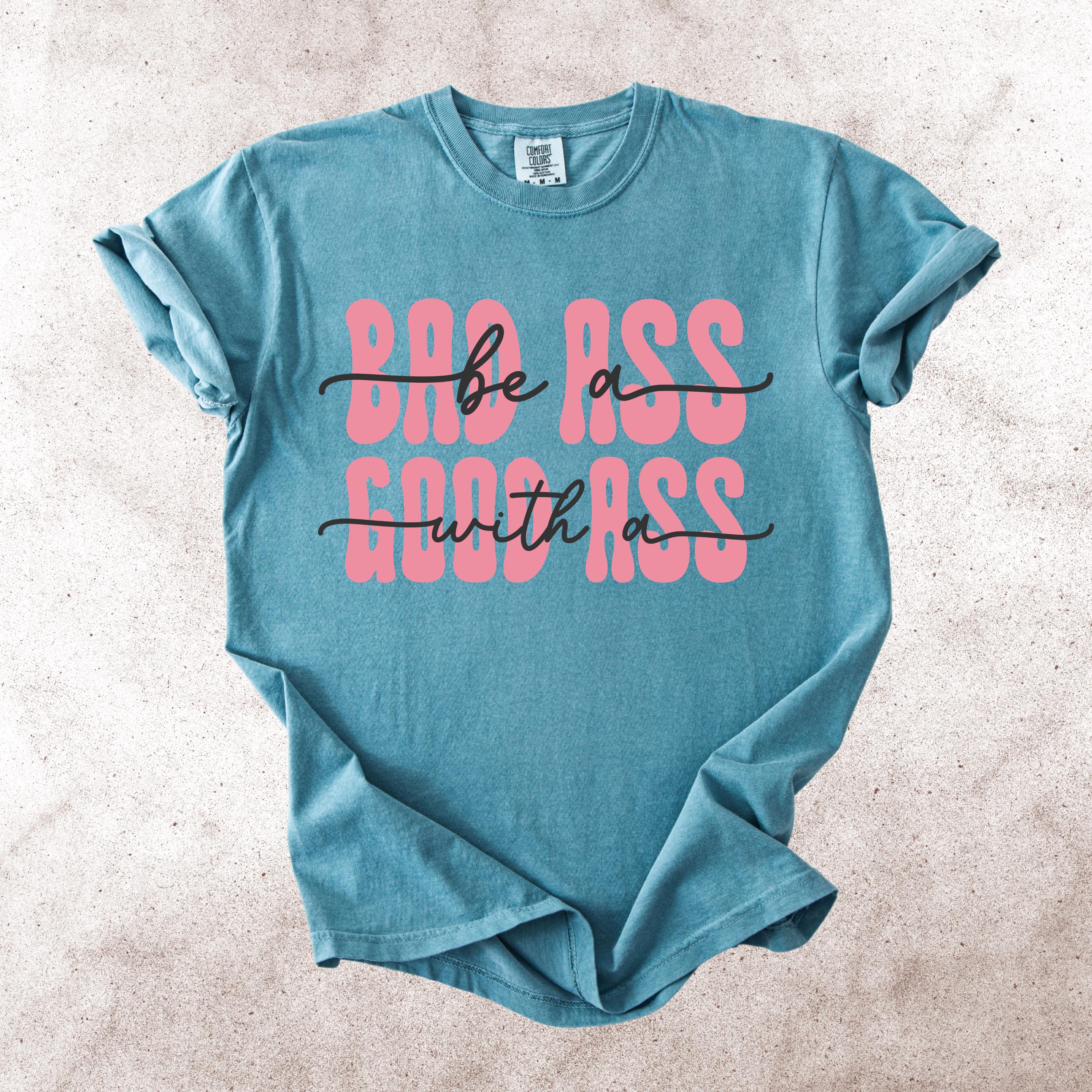 This Be a Bad Ass Get a Good Ass Comfort Colors tee is made for women who take their workouts seriously while keeping their style fun and confident.
