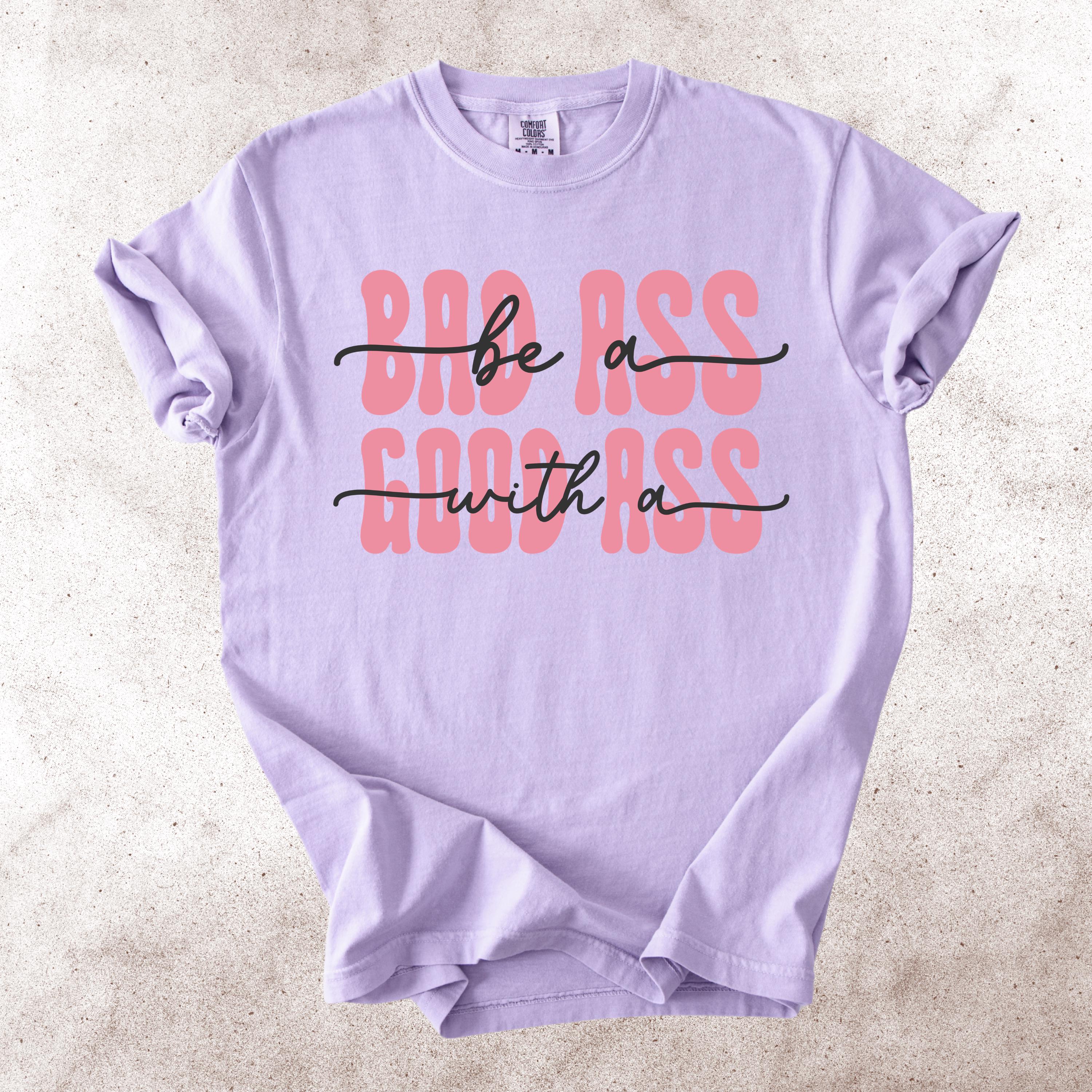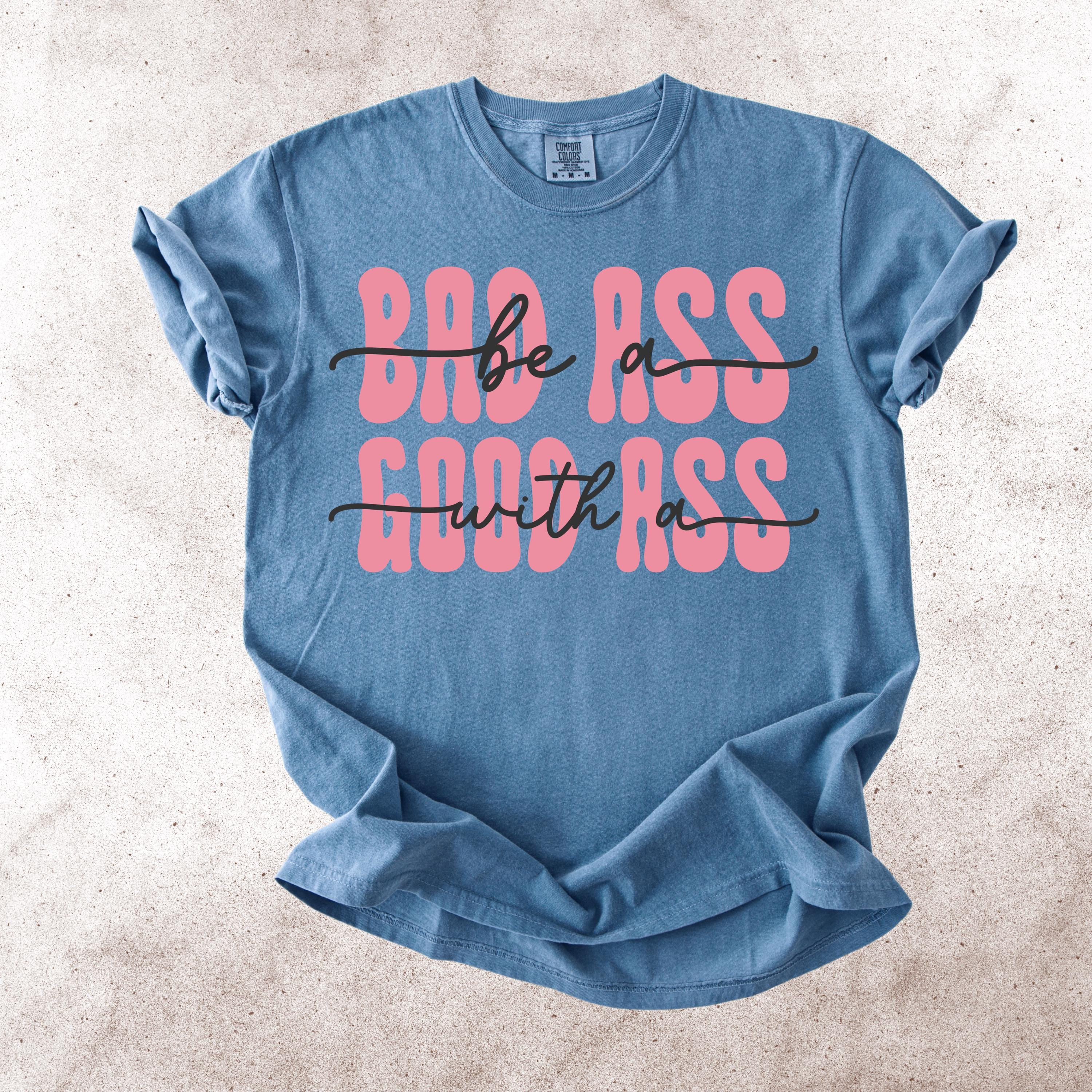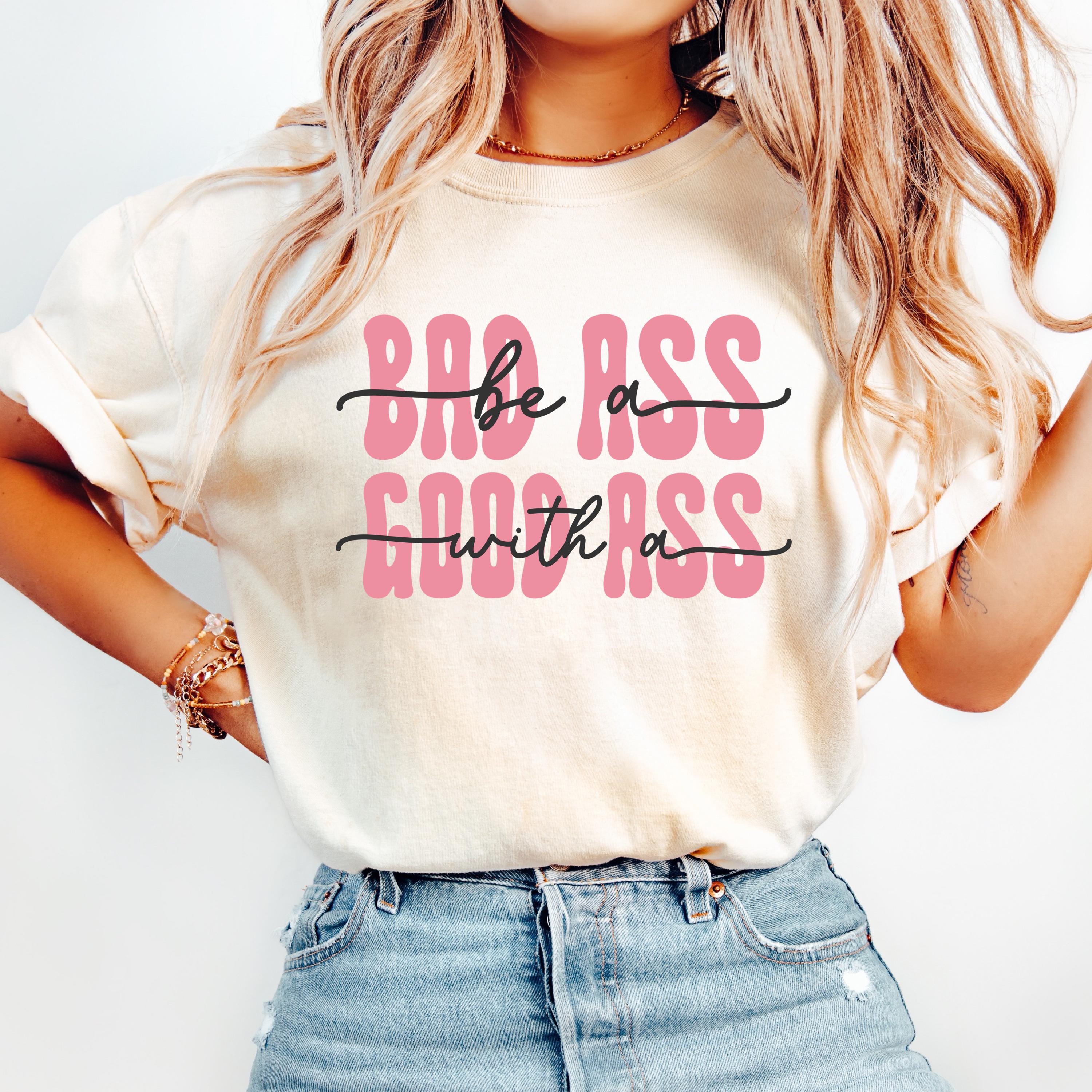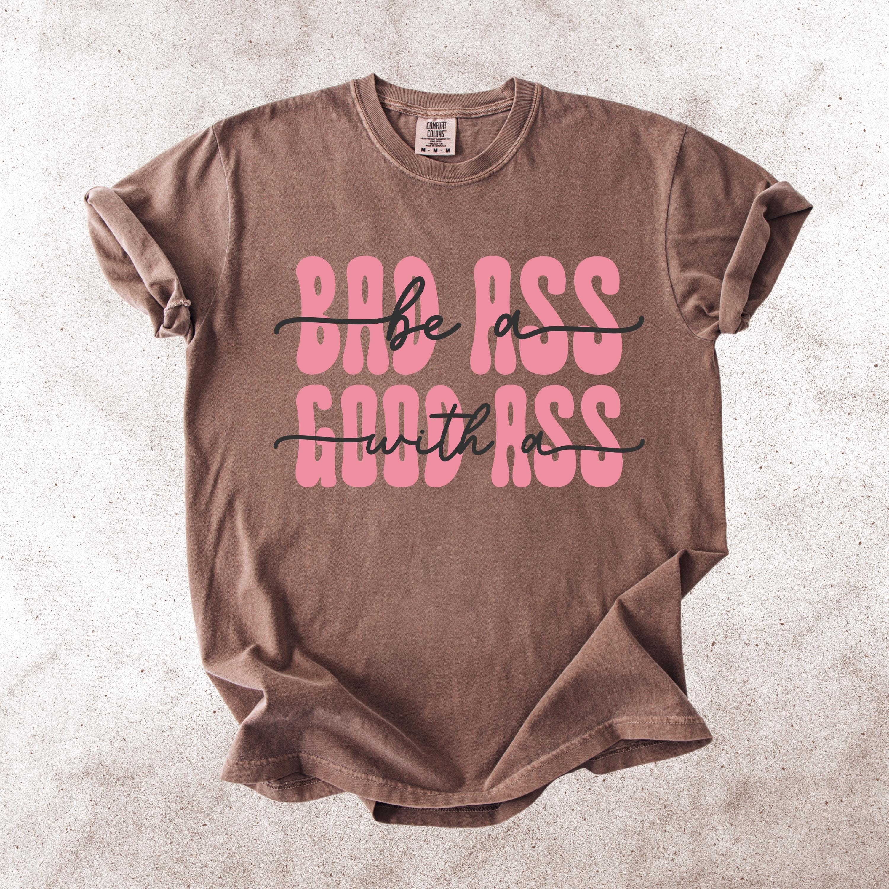 This Be a Bad Ass Get a Good Ass Comfort Colors tee is made for women who take their workouts seriously while keeping their style fun and confident.
