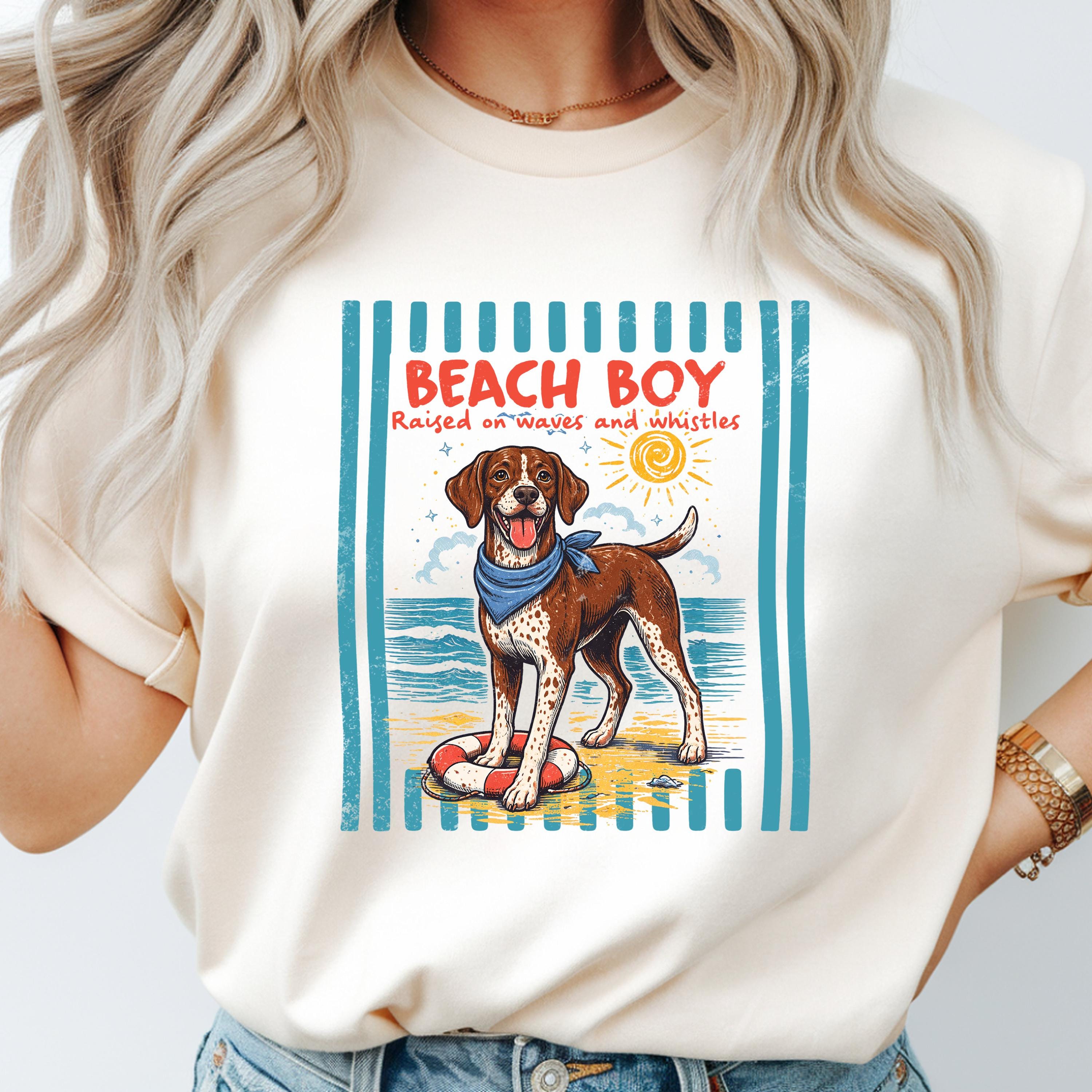 Featuring a cheerful beach dog illustration with a retro coastal design, this shirt brings together summer energy and pet lover style. Whether you're heading to the beach, walking your dog, or just love coastal aesthetics, this tee is a perfect match.
