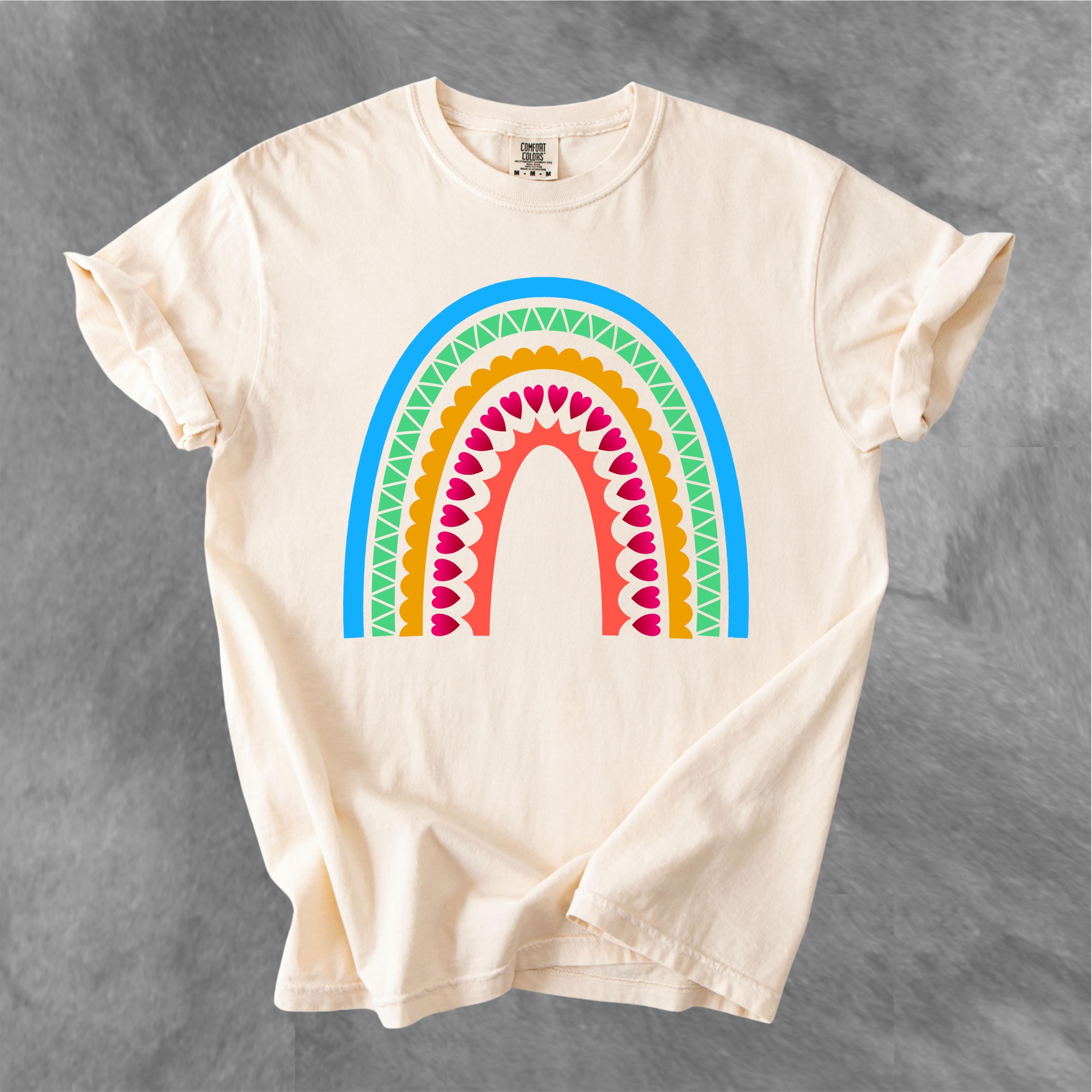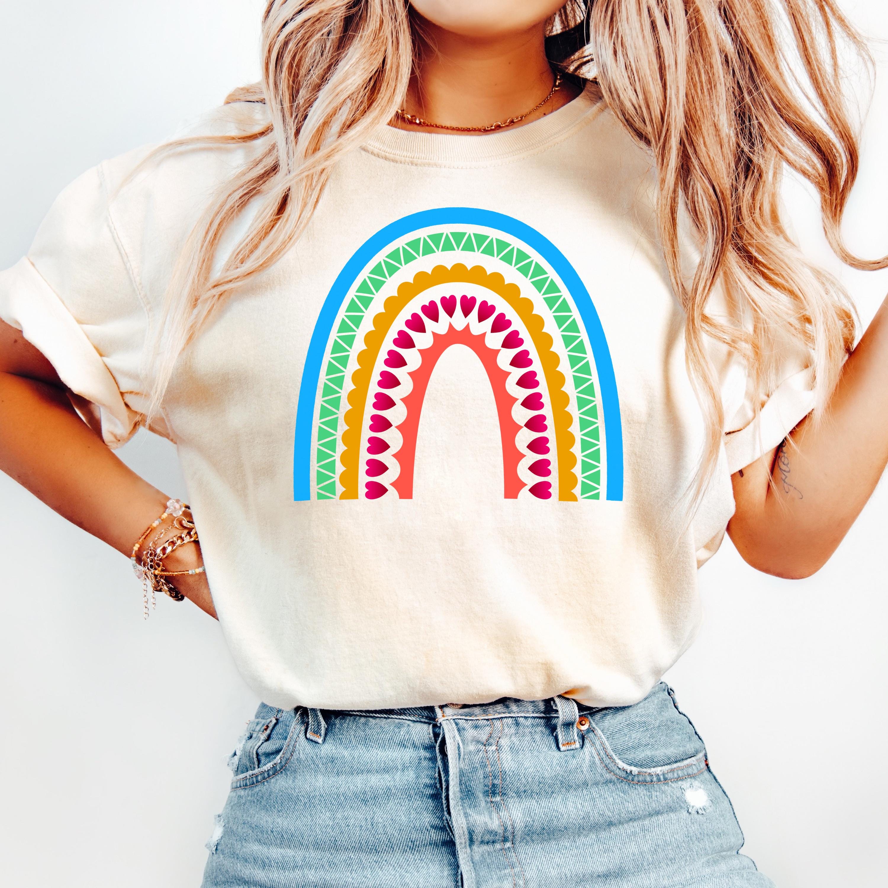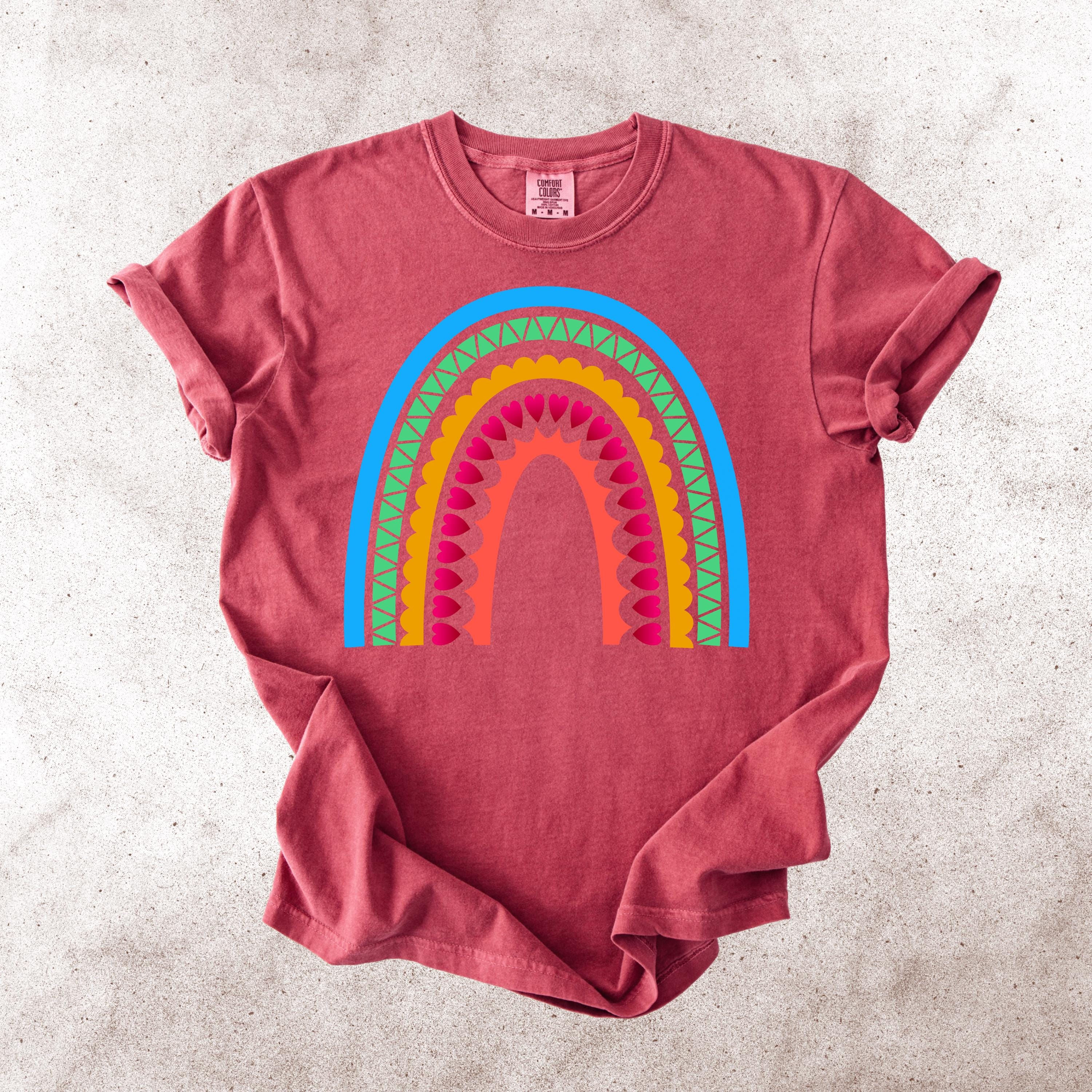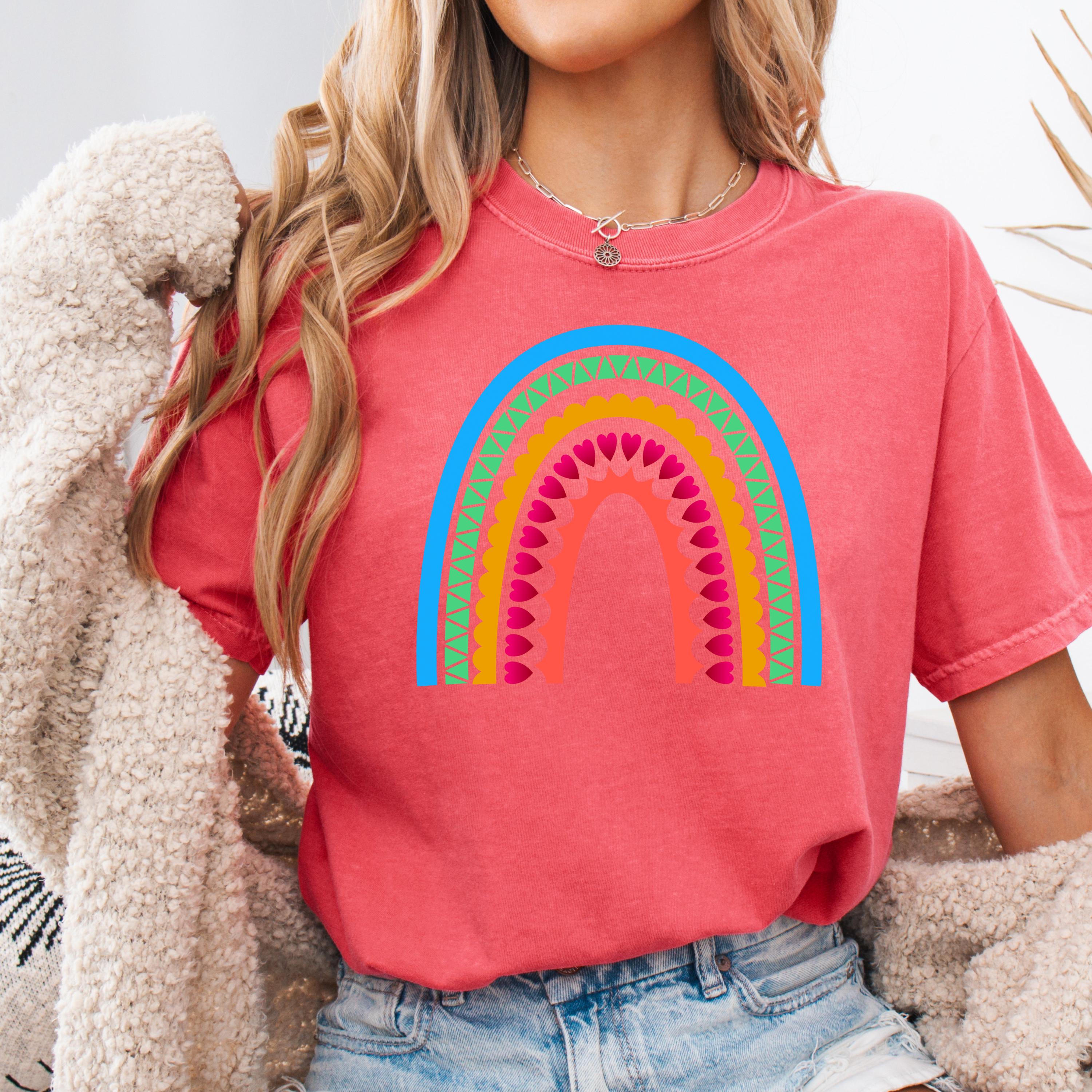 This Scandinavian Folk Art Rainbow Comfort Colors tee features a colorful Nordic-inspired rainbow design with hearts, geometric details, and folk art patterns. Inspired by traditional symbols of good luck, abundance, protection, and positive energy, this design brings a cheerful yet meaningful aesthetic to everyday style.