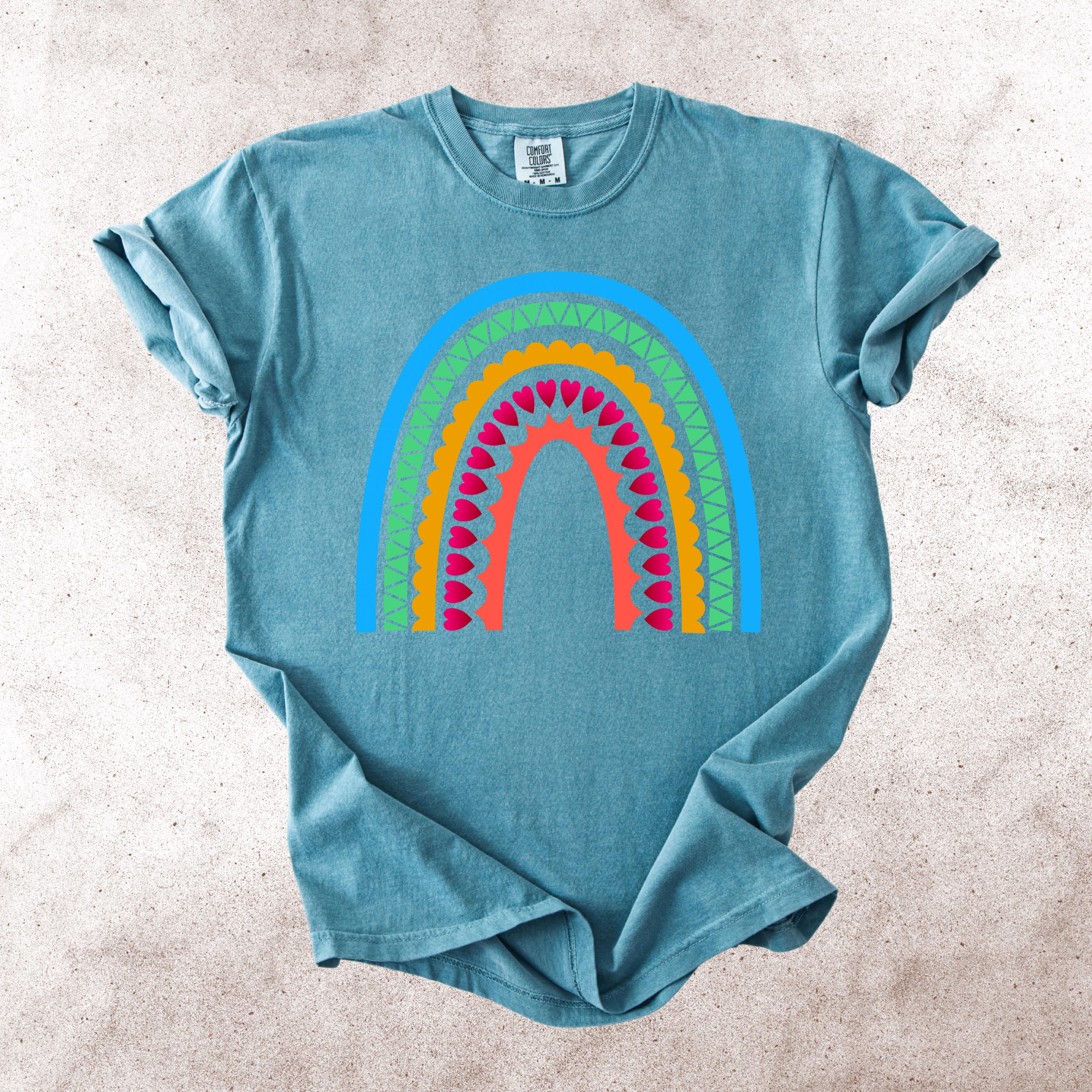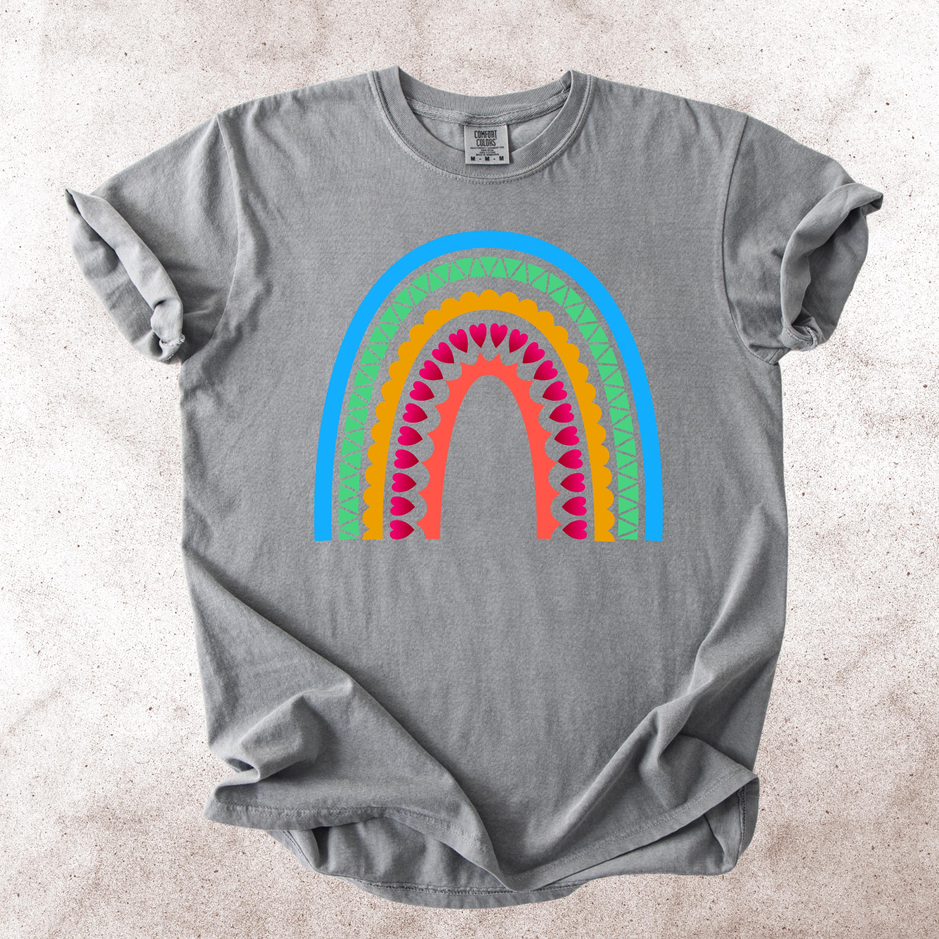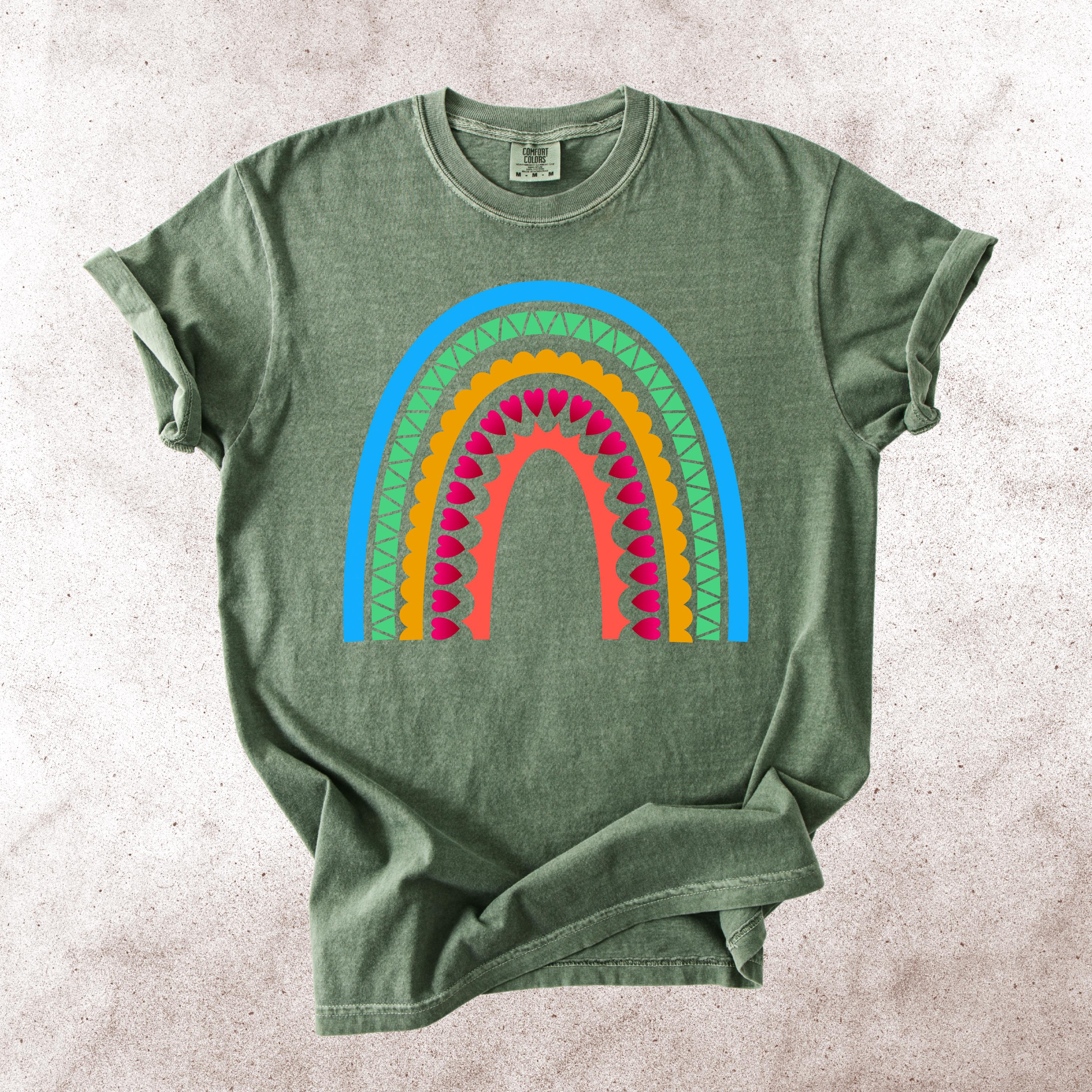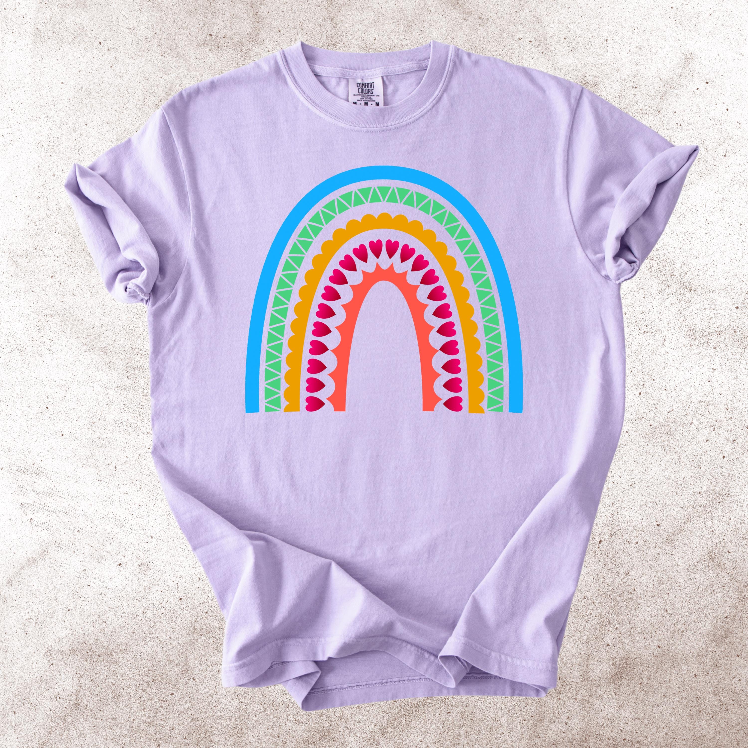 This Scandinavian Folk Art Rainbow Comfort Colors tee features a colorful Nordic-inspired rainbow design with hearts, geometric details, and folk art patterns. Inspired by traditional symbols of good luck, abundance, protection, and positive energy, this design brings a cheerful yet meaningful aesthetic to everyday style.