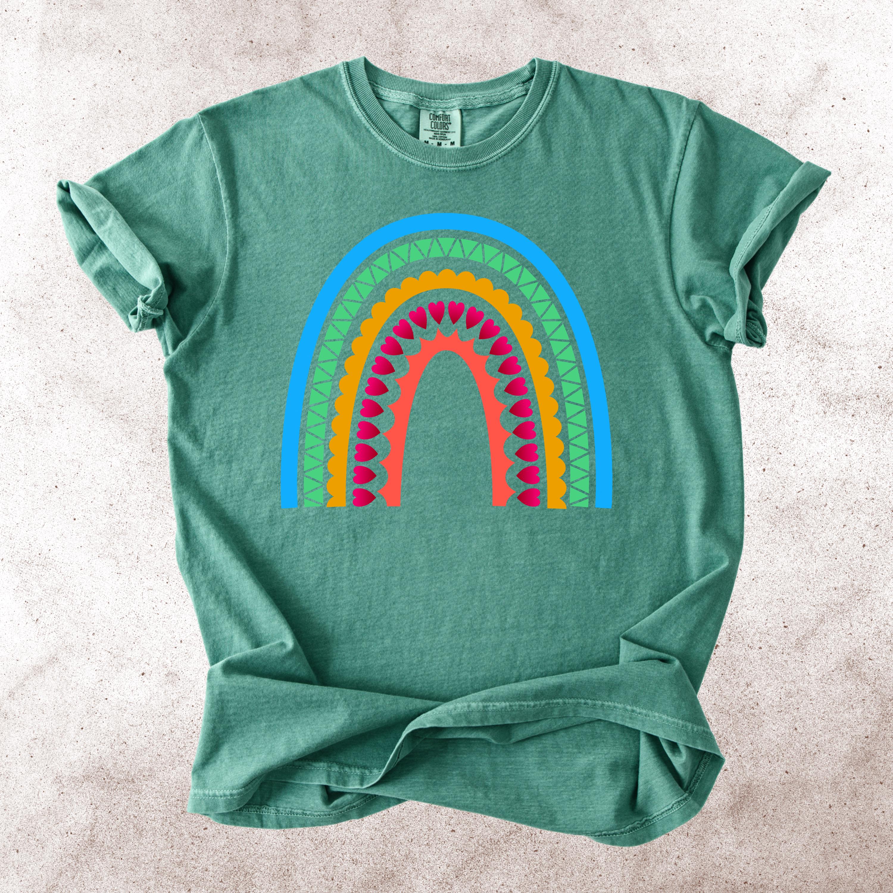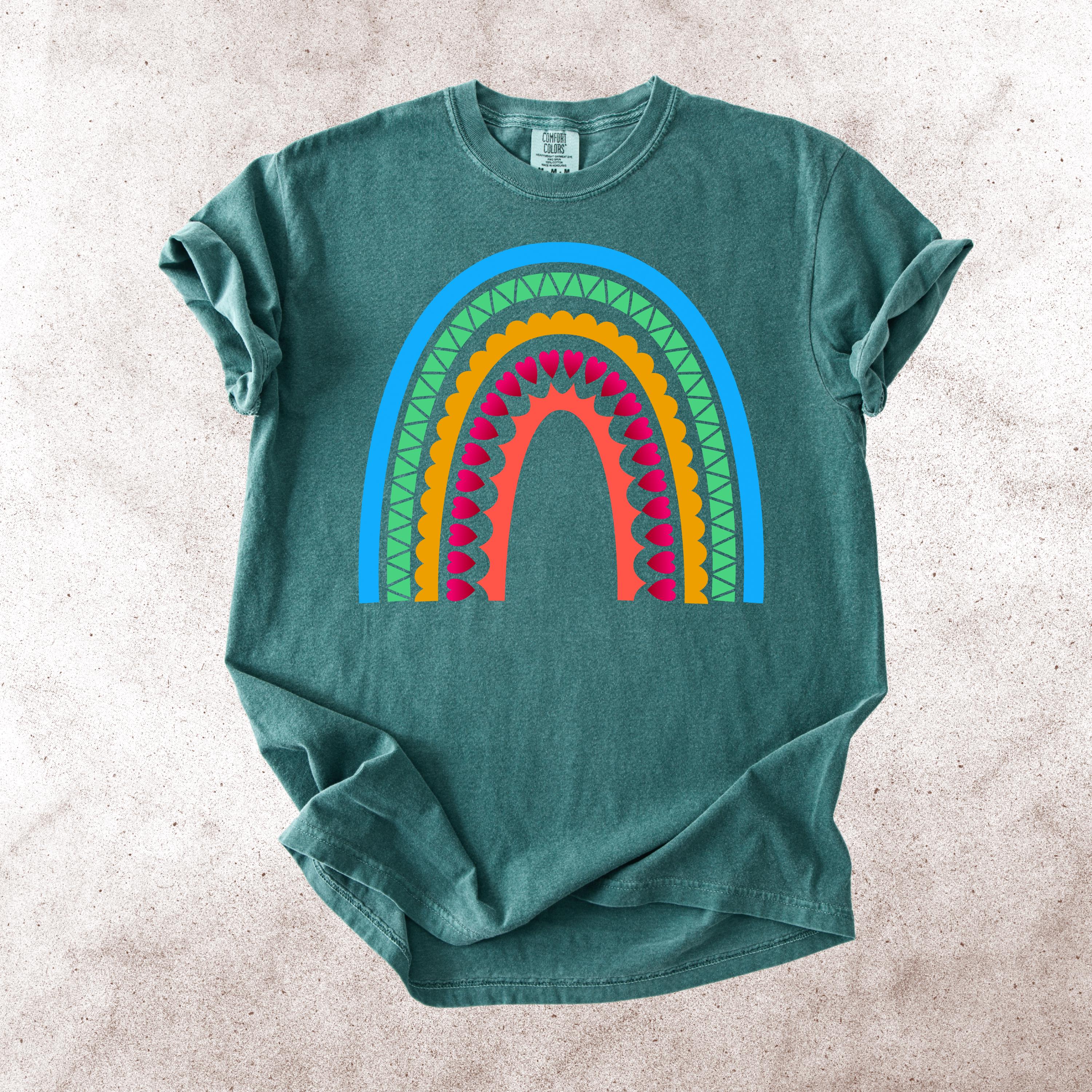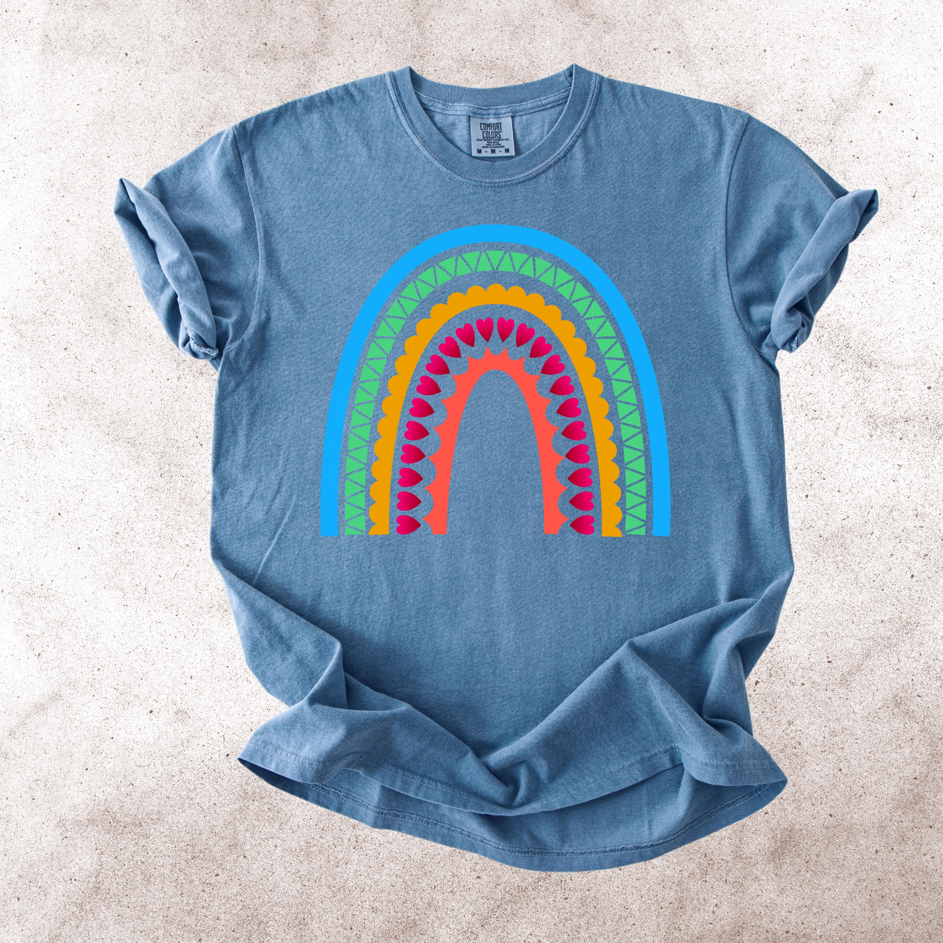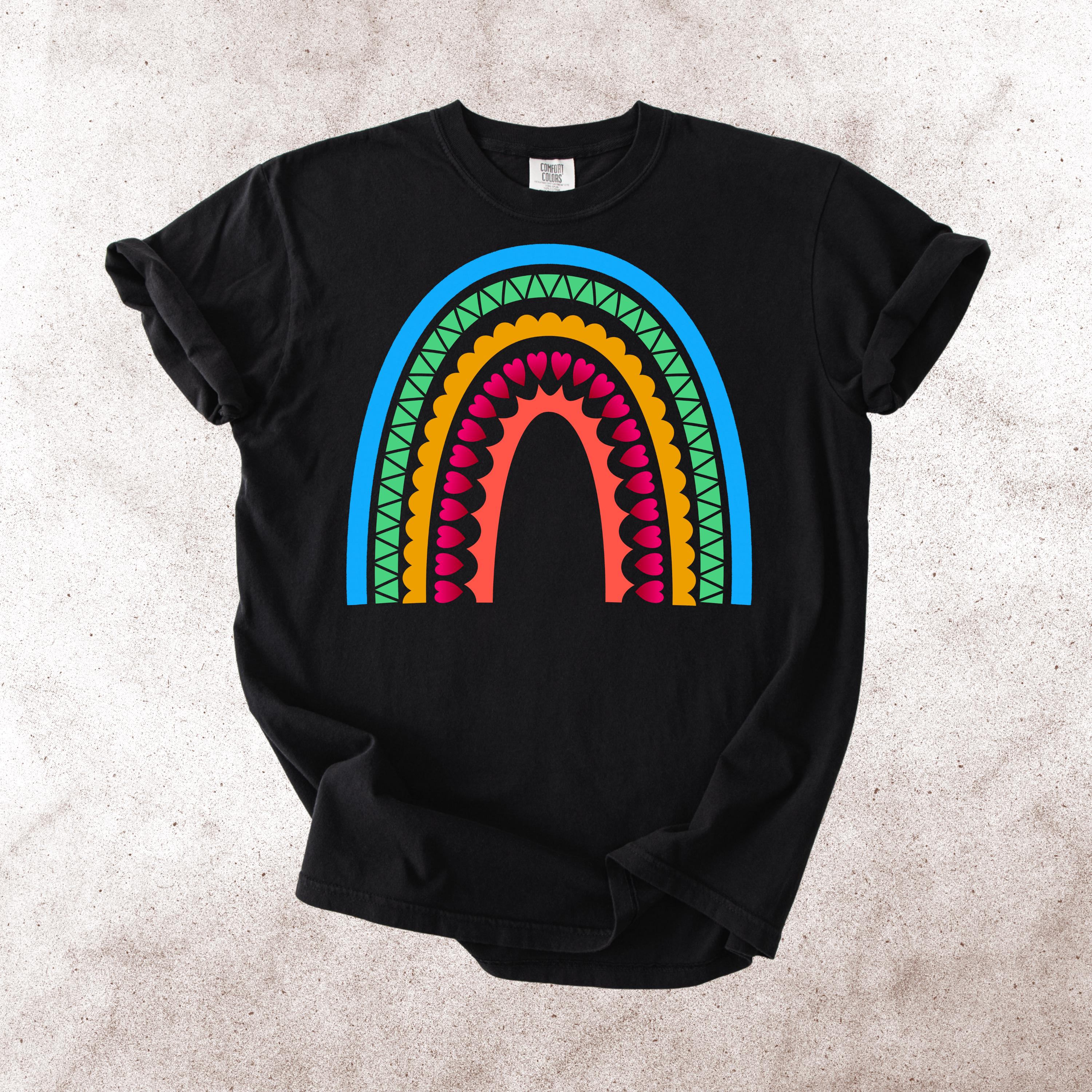 This Scandinavian Folk Art Rainbow Comfort Colors tee features a colorful Nordic-inspired rainbow design with hearts, geometric details, and folk art patterns. Inspired by traditional symbols of good luck, abundance, protection, and positive energy, this design brings a cheerful yet meaningful aesthetic to everyday style.
