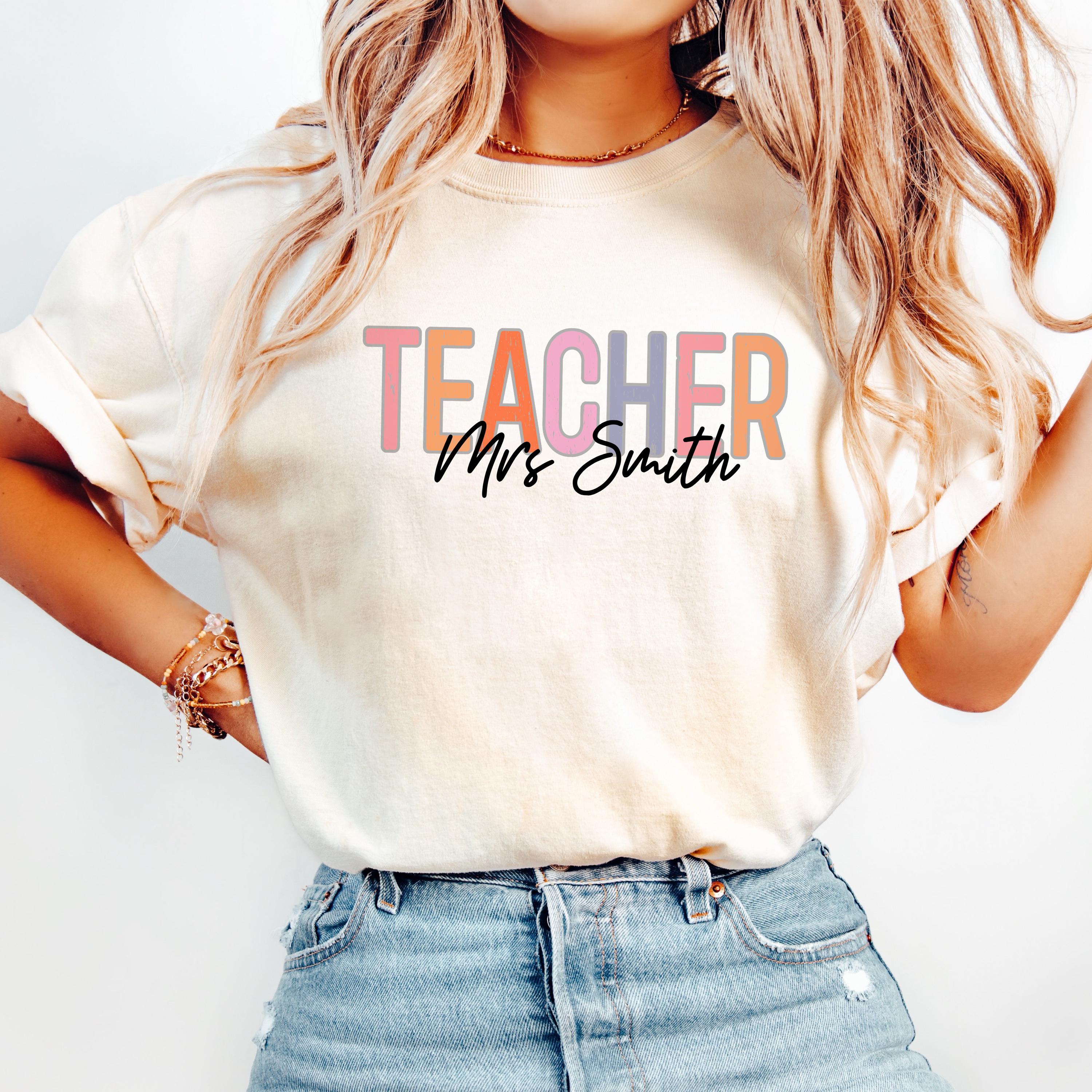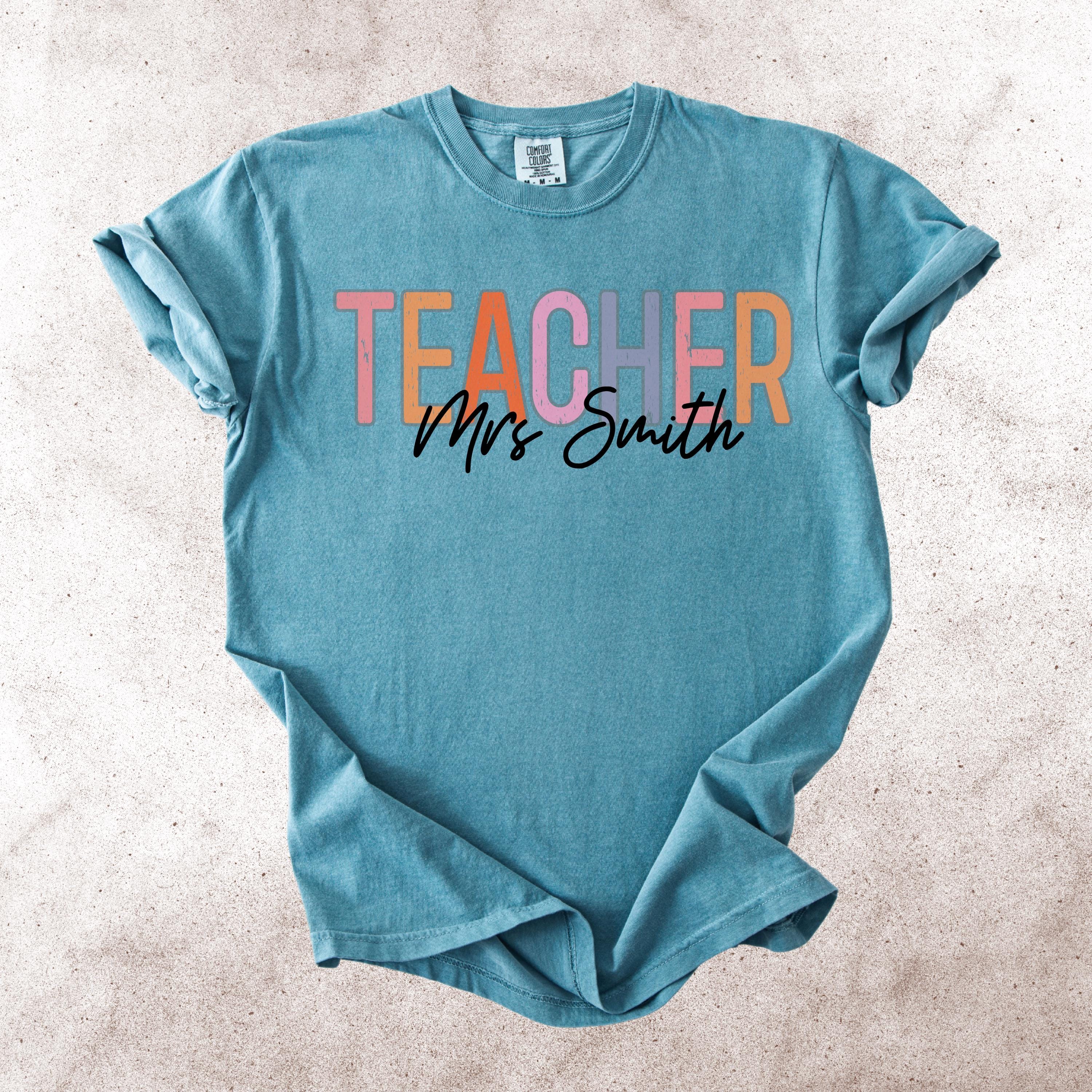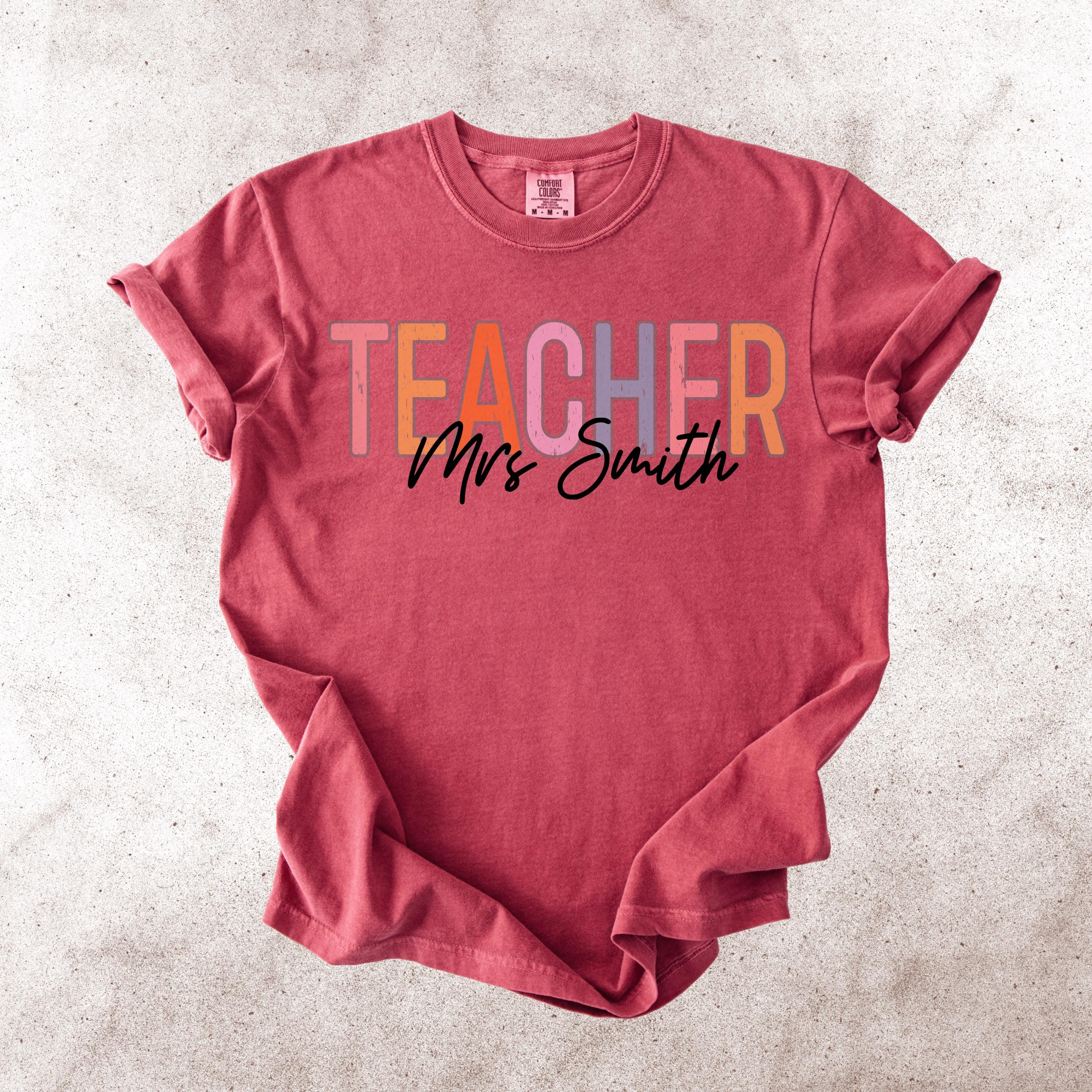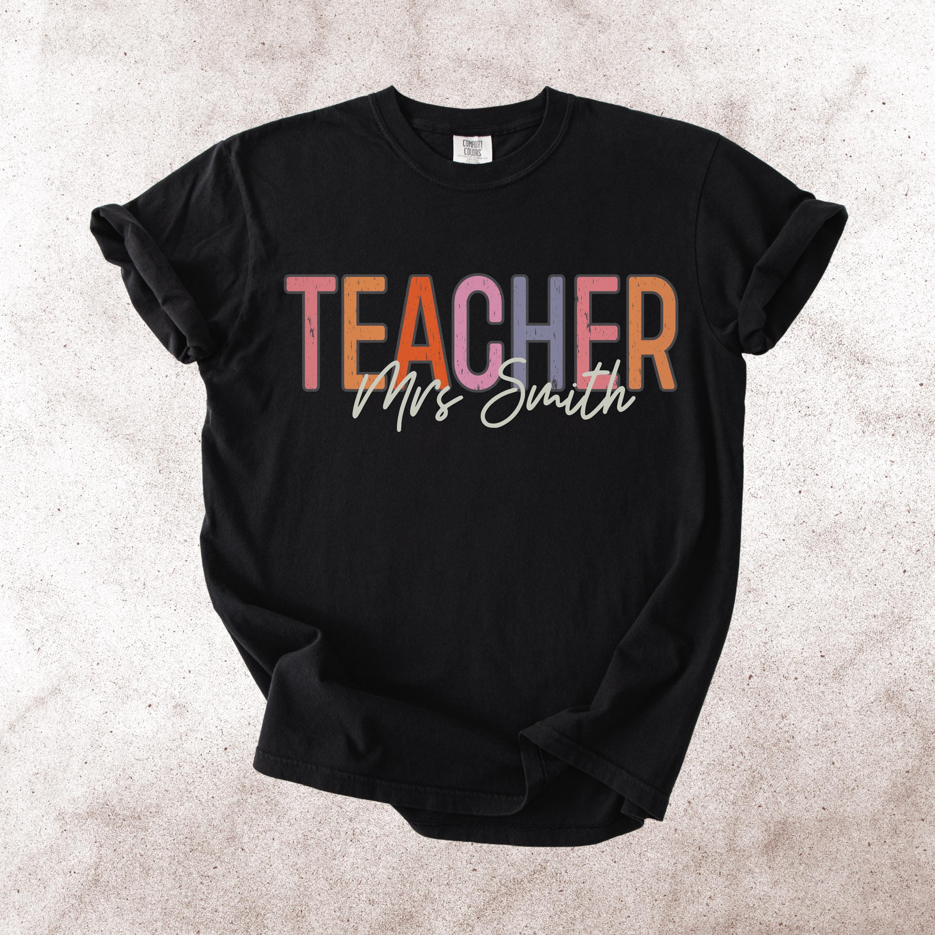 Made on high-quality comfort colors tee, this shirt offers a relaxed fit and soft feel, perfect for long school days. Great as a teacher appreciation gift, first day of school outfit, or custom teacher name shirt for educators.