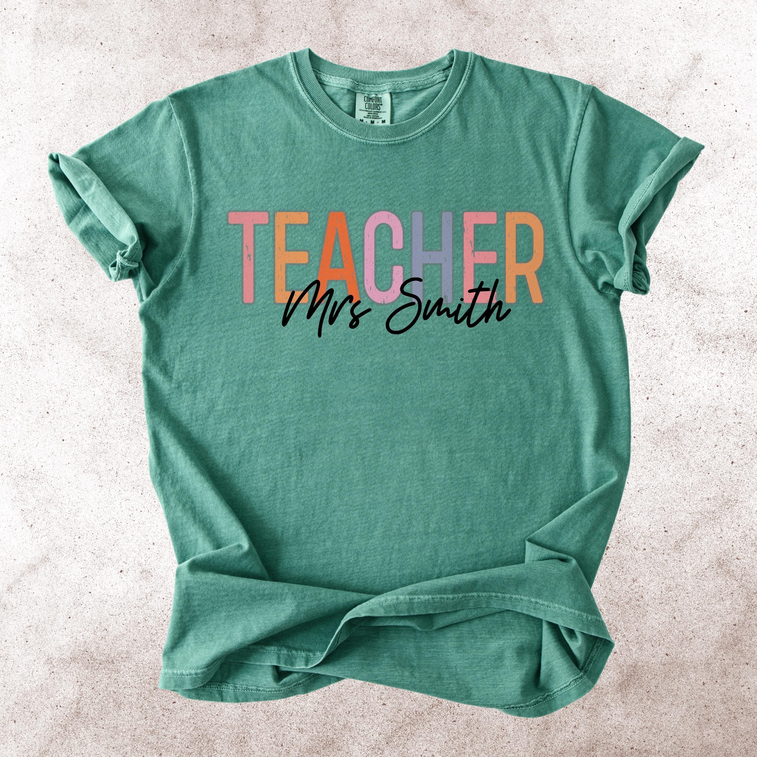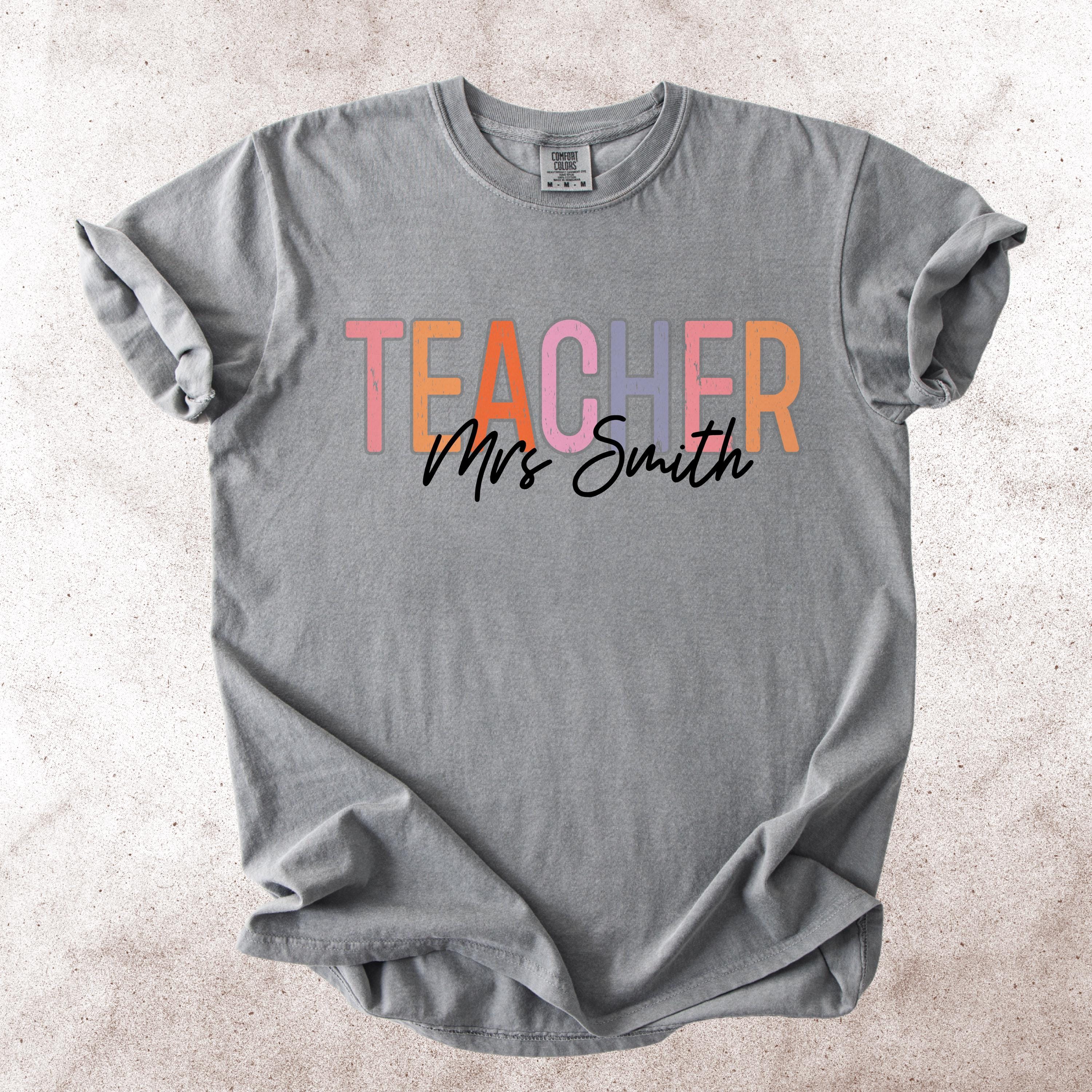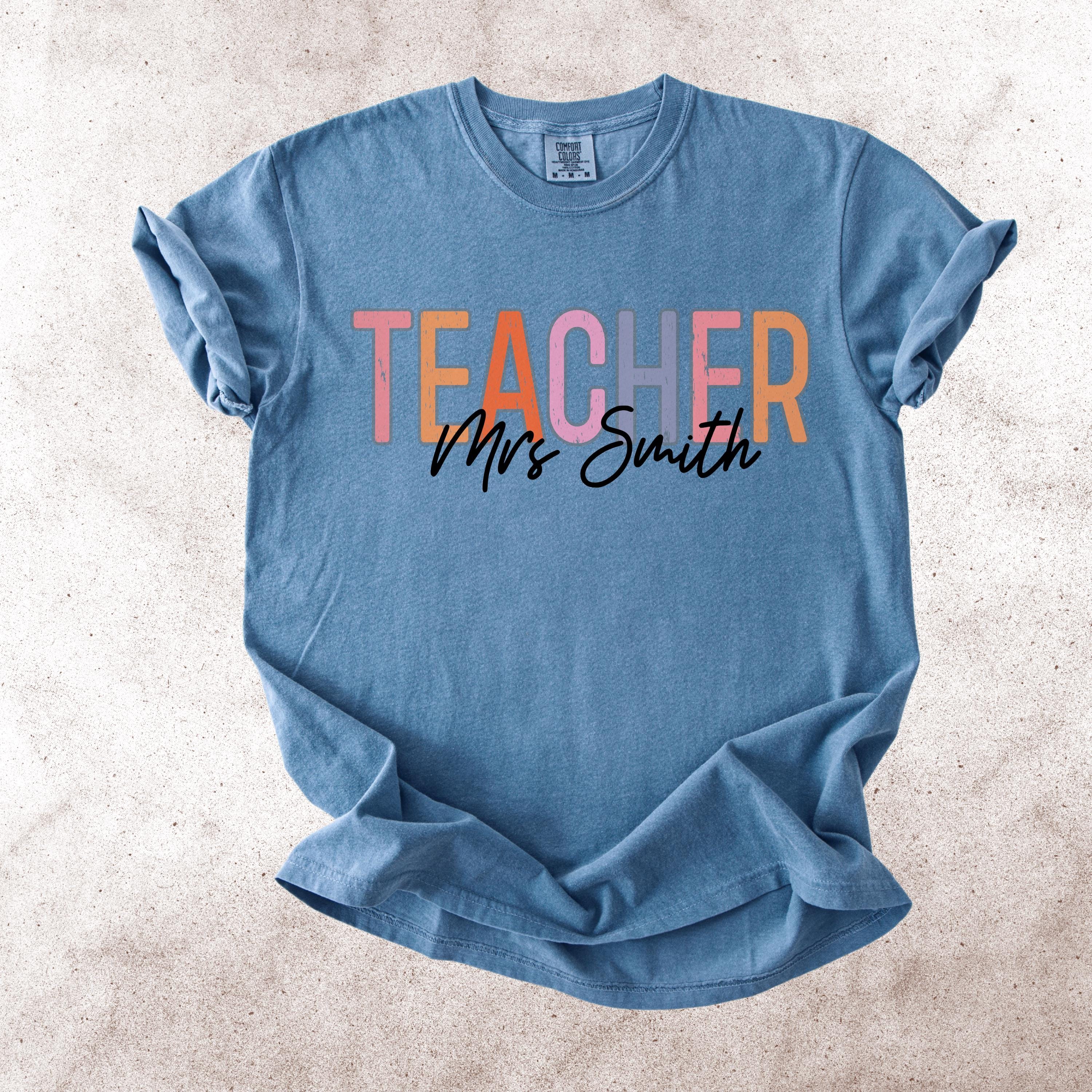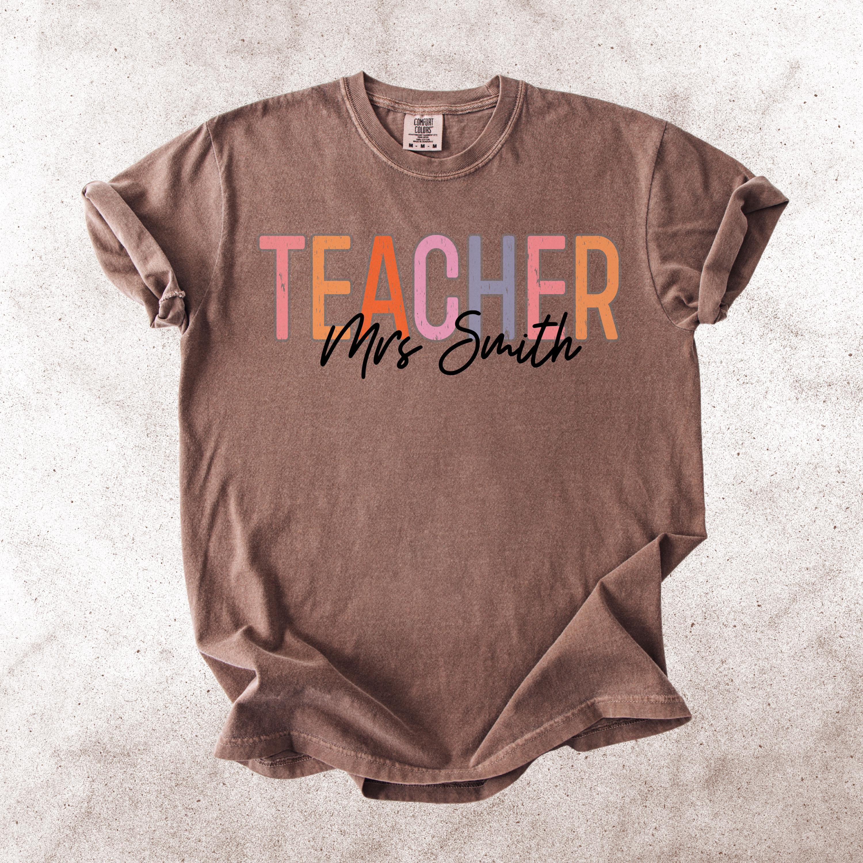 Made on high-quality comfort colors tee, this shirt offers a relaxed fit and soft feel, perfect for long school days. Great as a teacher appreciation gift, first day of school outfit, or custom teacher name shirt for educators.