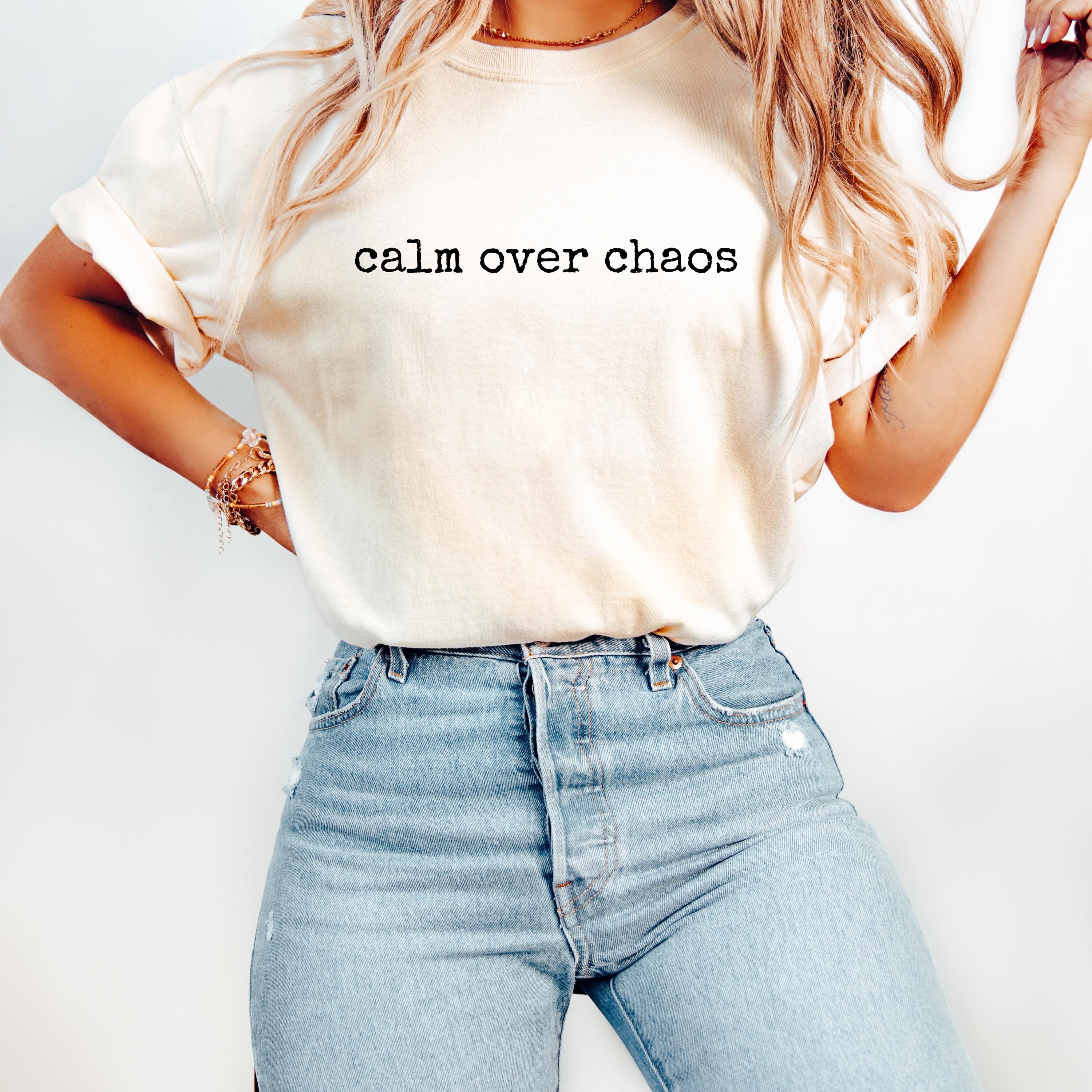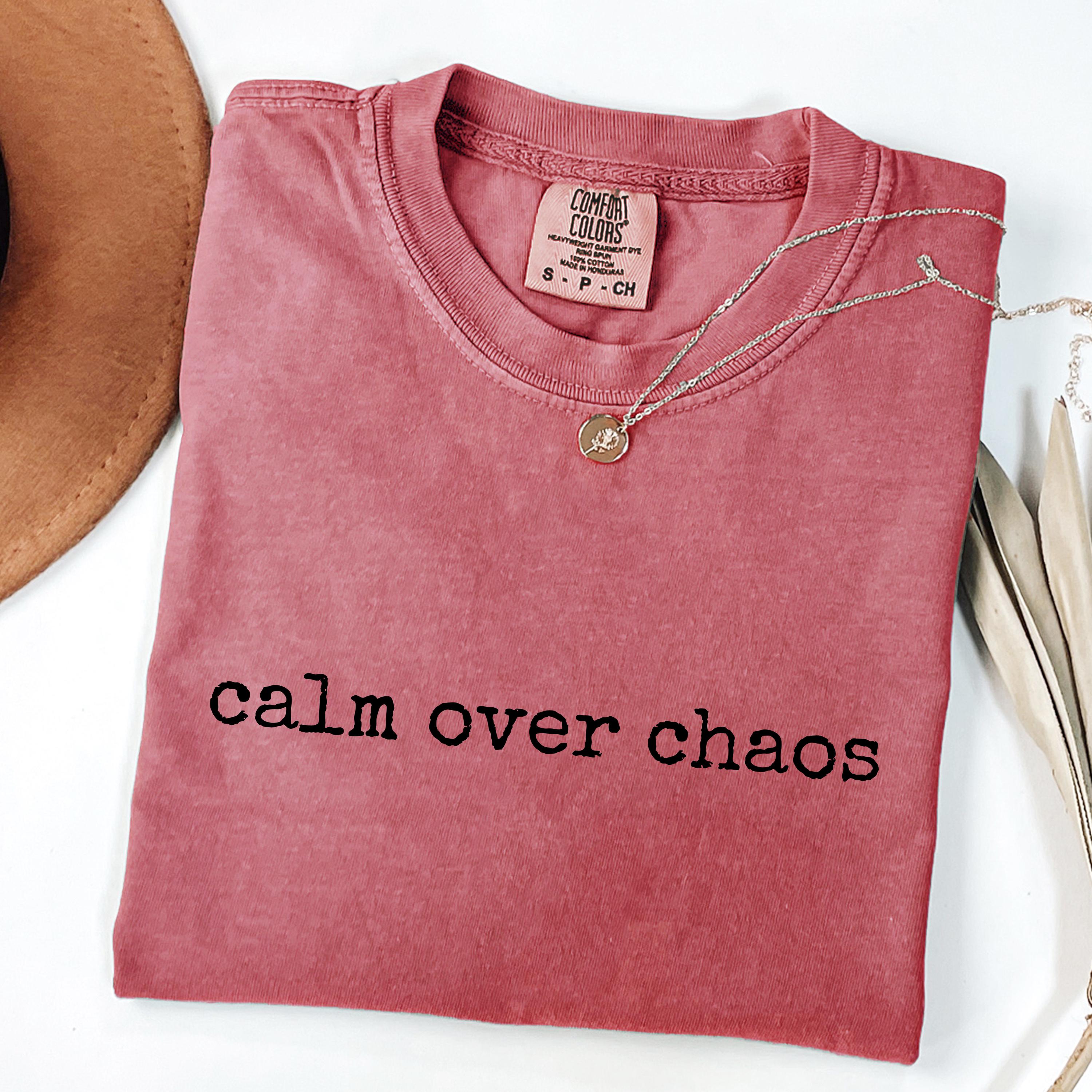Find your balance with this minimalist comfort colors tee featuring the phrase “calm over chaos” in a vintage-style distressed font. Designed for those who value peace, simplicity, and a relaxed mindset, this piece delivers a timeless aesthetic with a modern message.