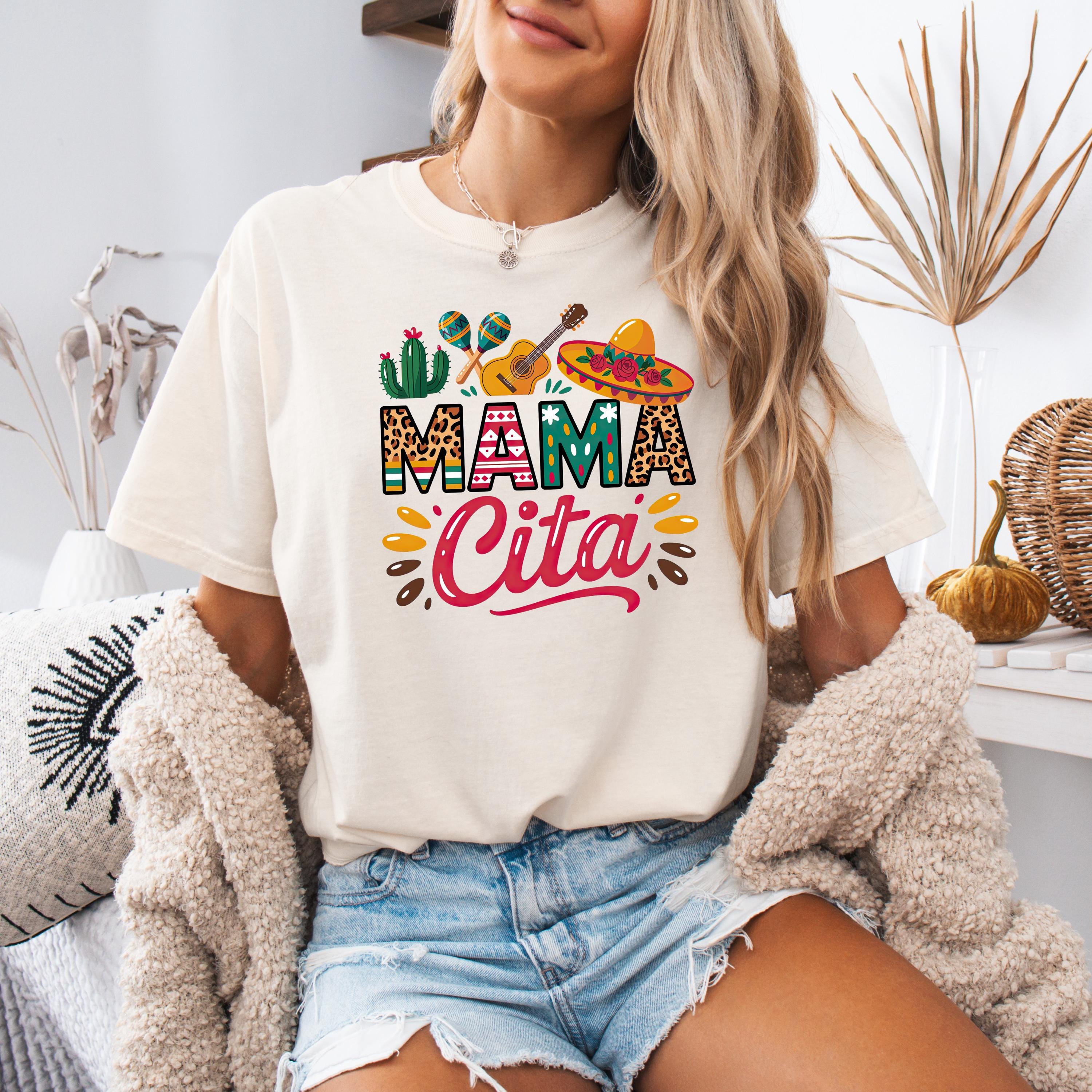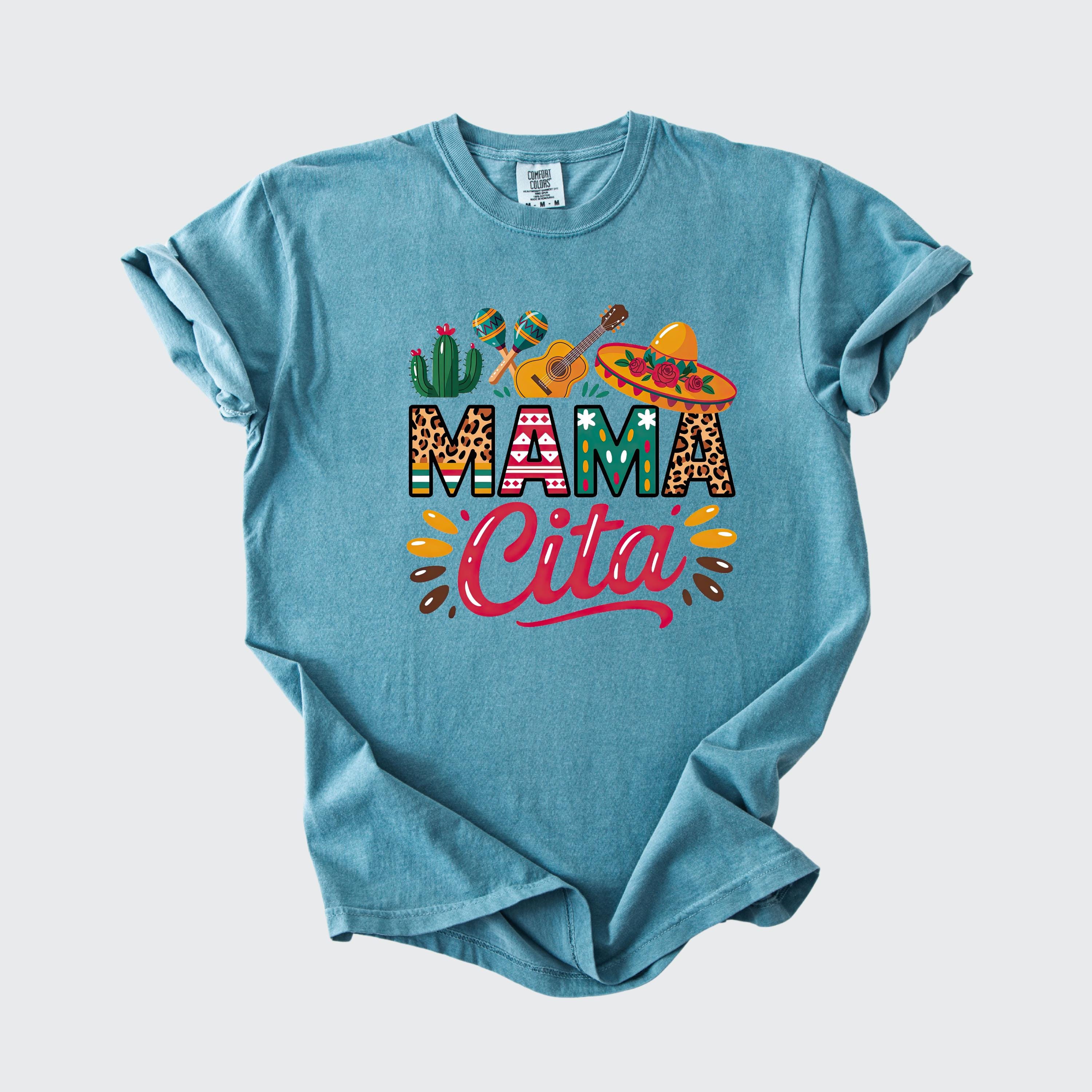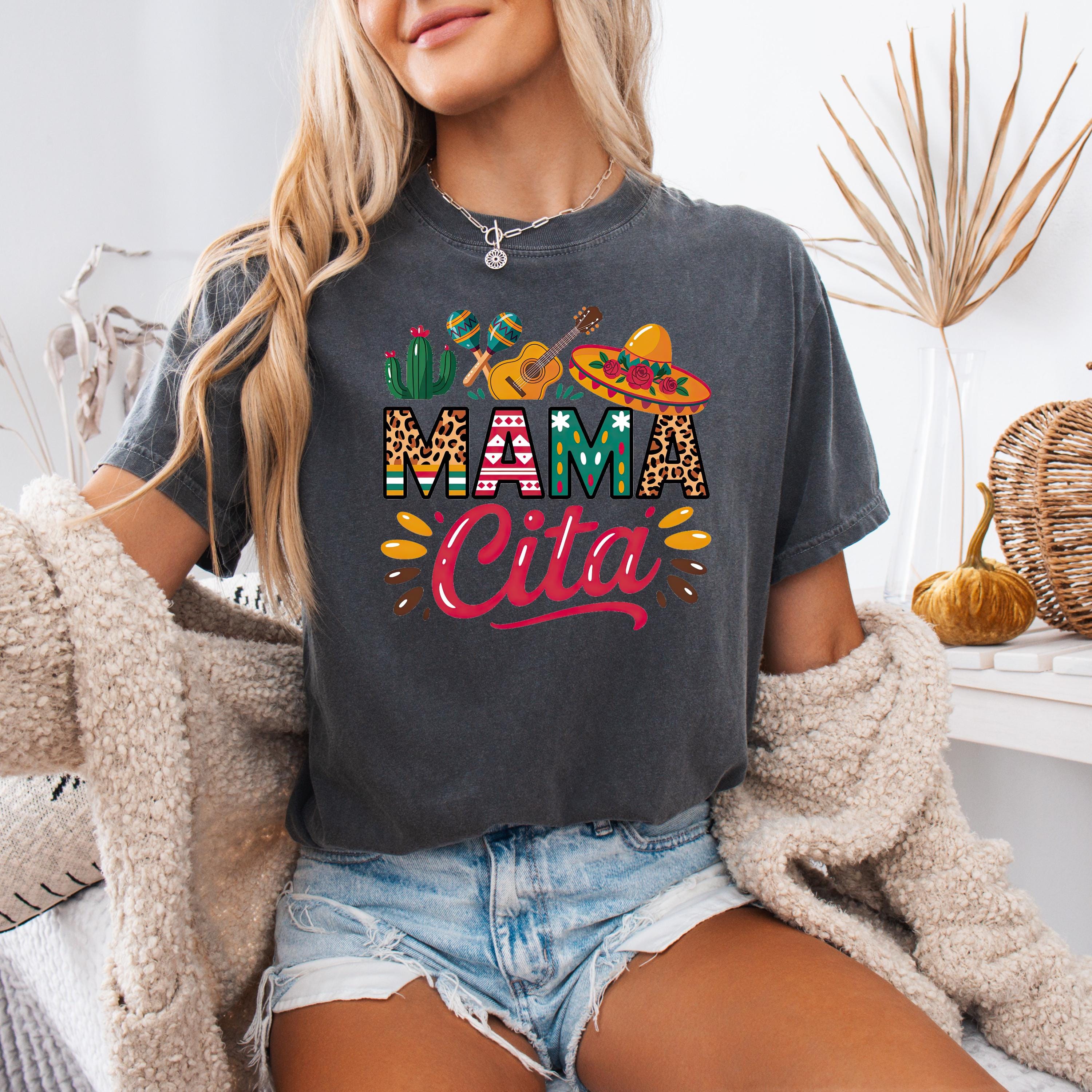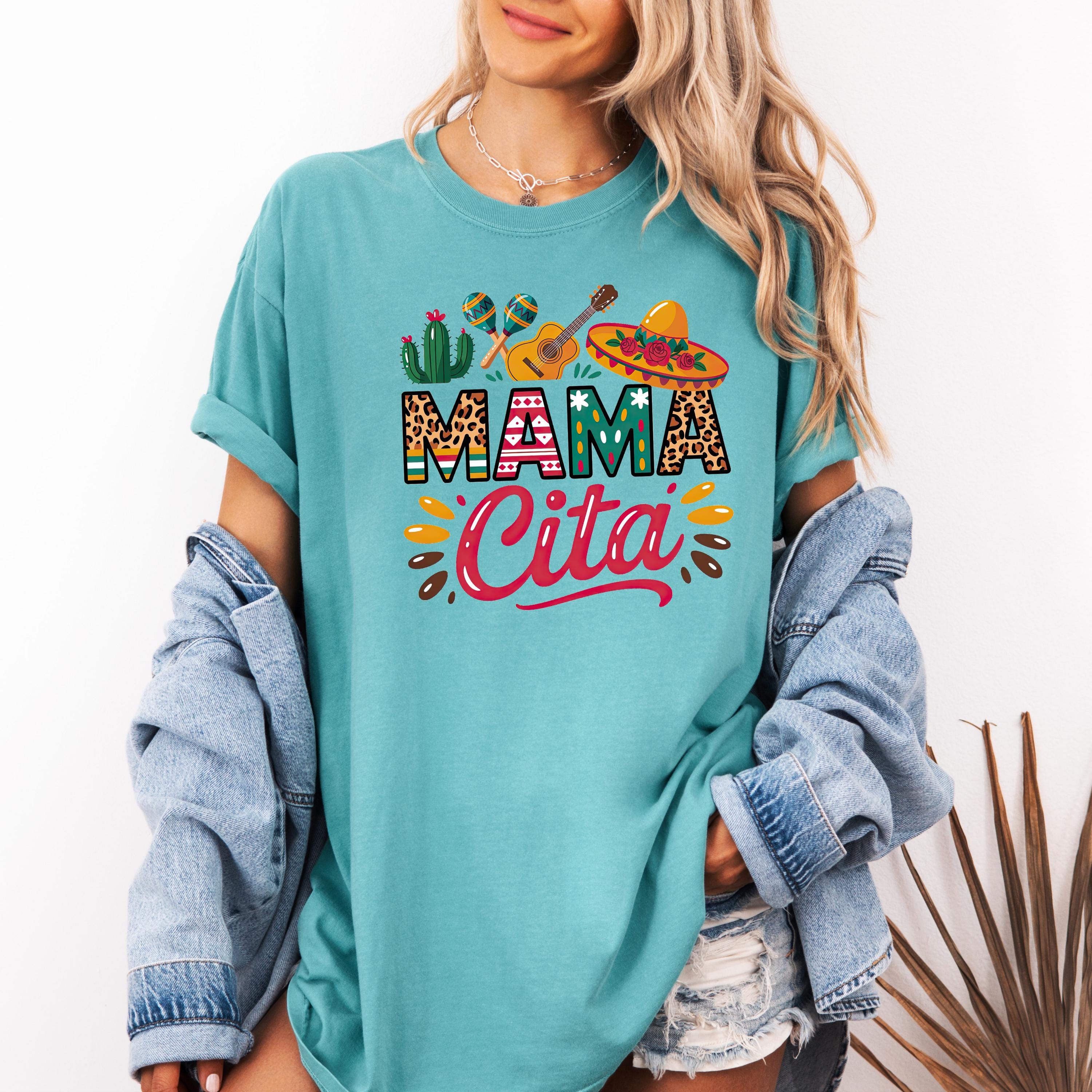 Celebrate in style with this fun comfort colors tee featuring a colorful “Mama Cita” design with fiesta-inspired details like a sombrero, guitar, cactus, and maracas. Perfect for Cinco de Mayo, taco nights, Mexican-themed parties, summer fiestas, or casual everyday wear.
