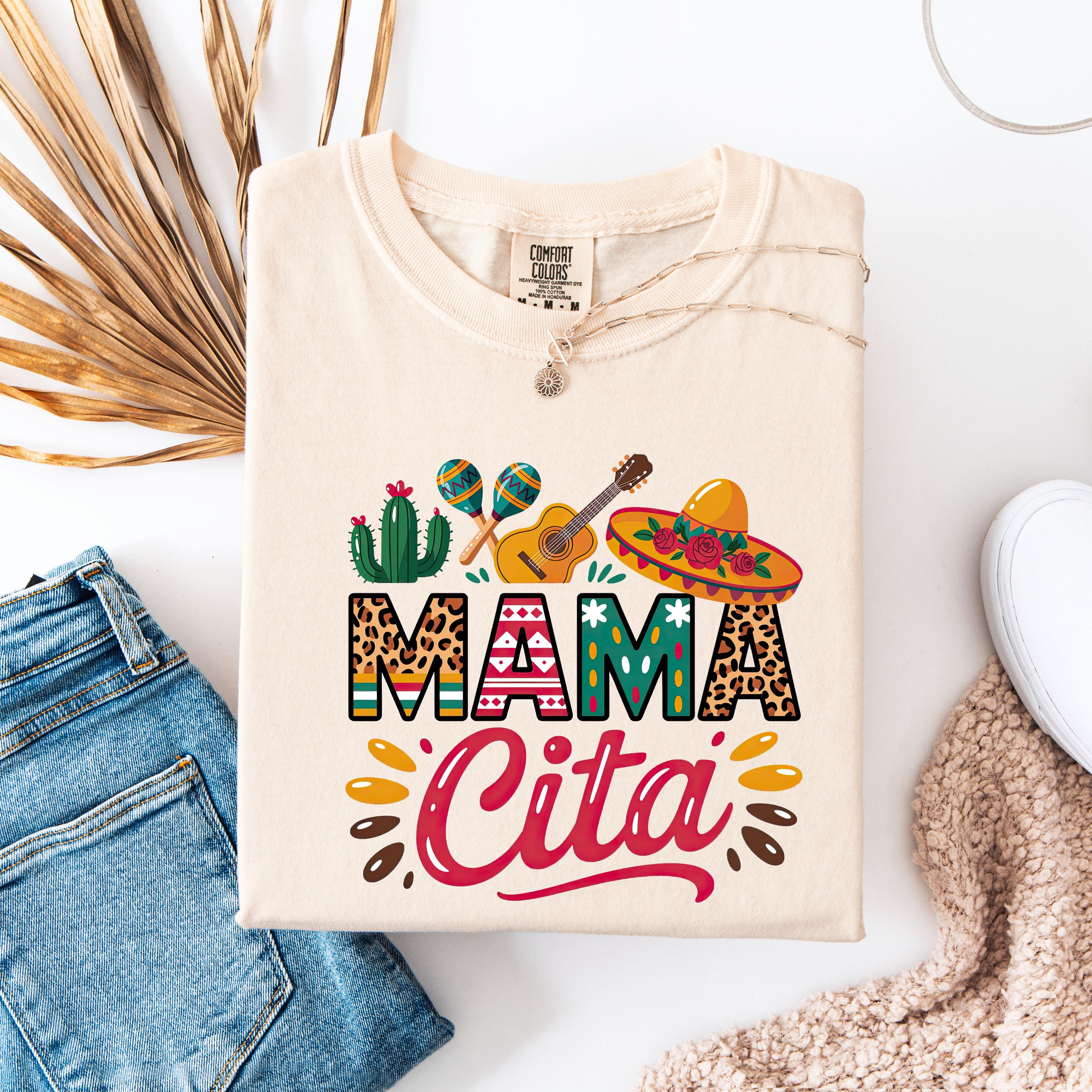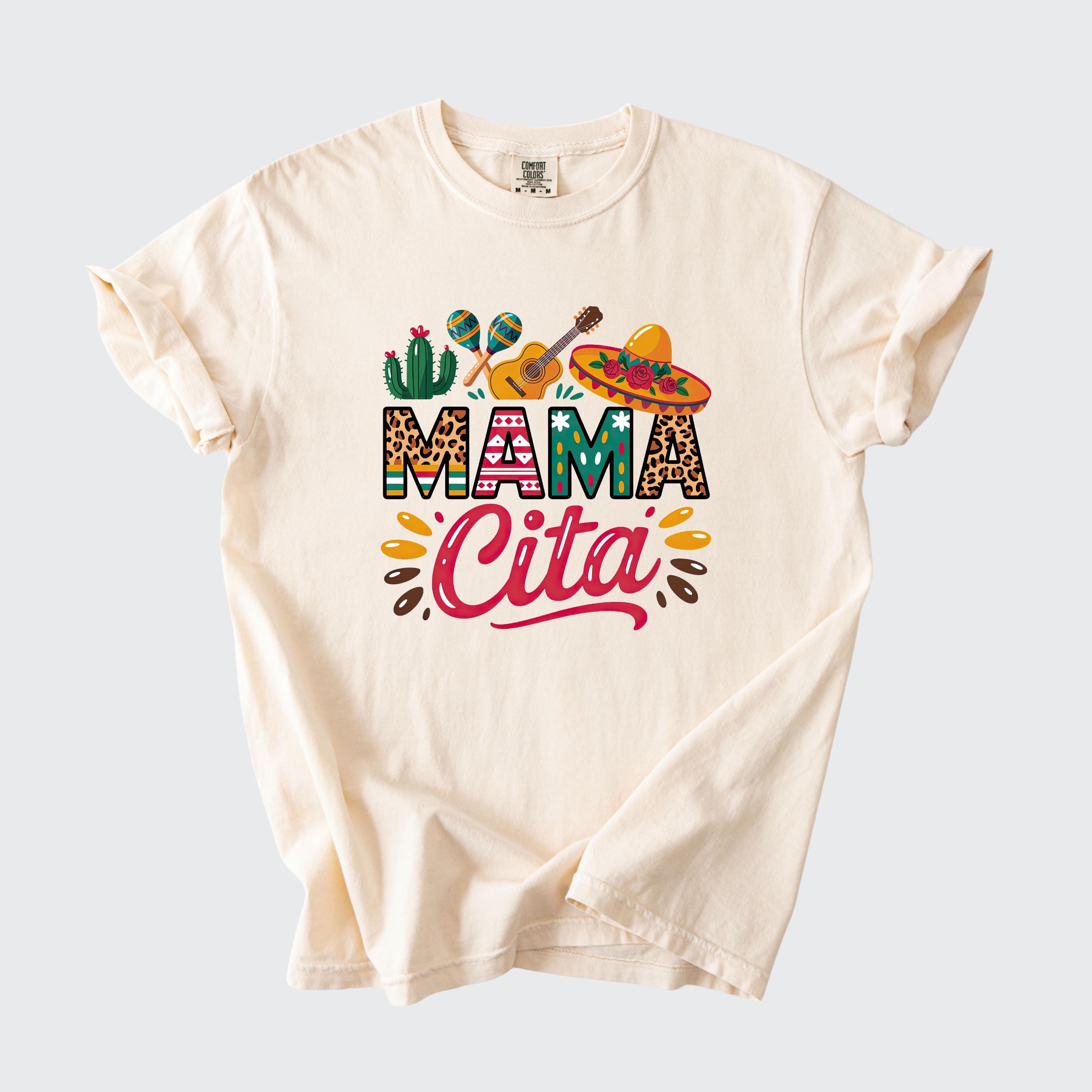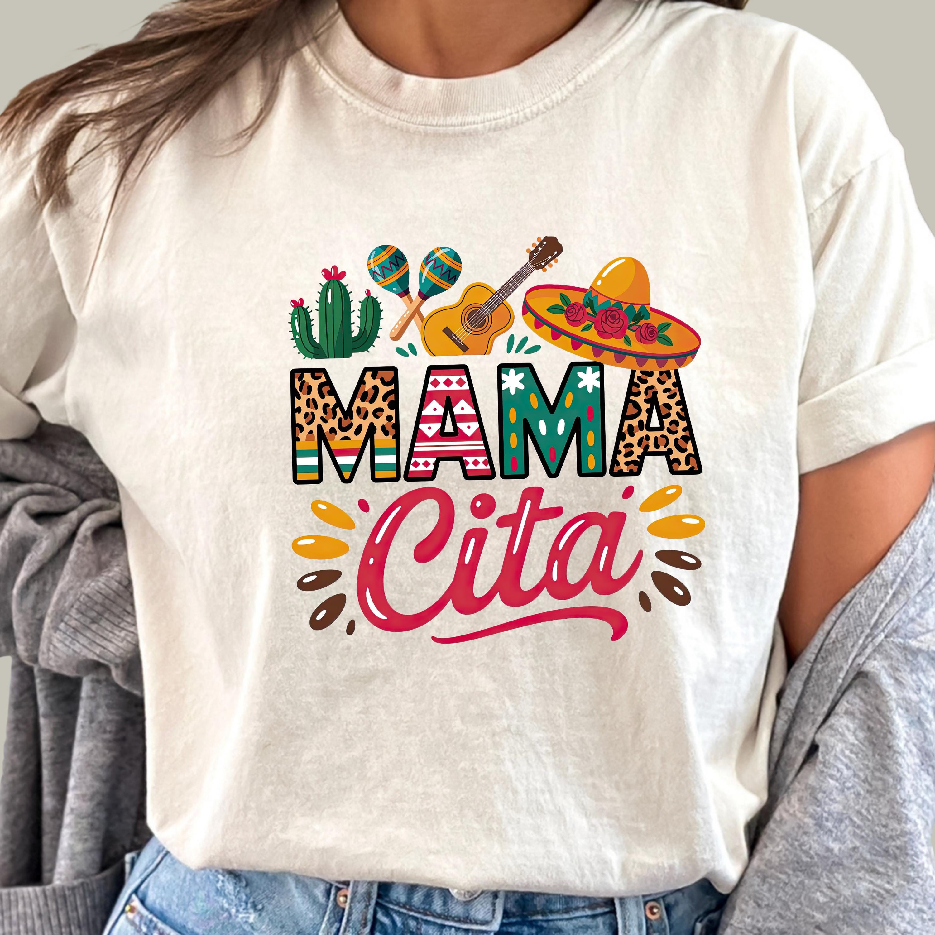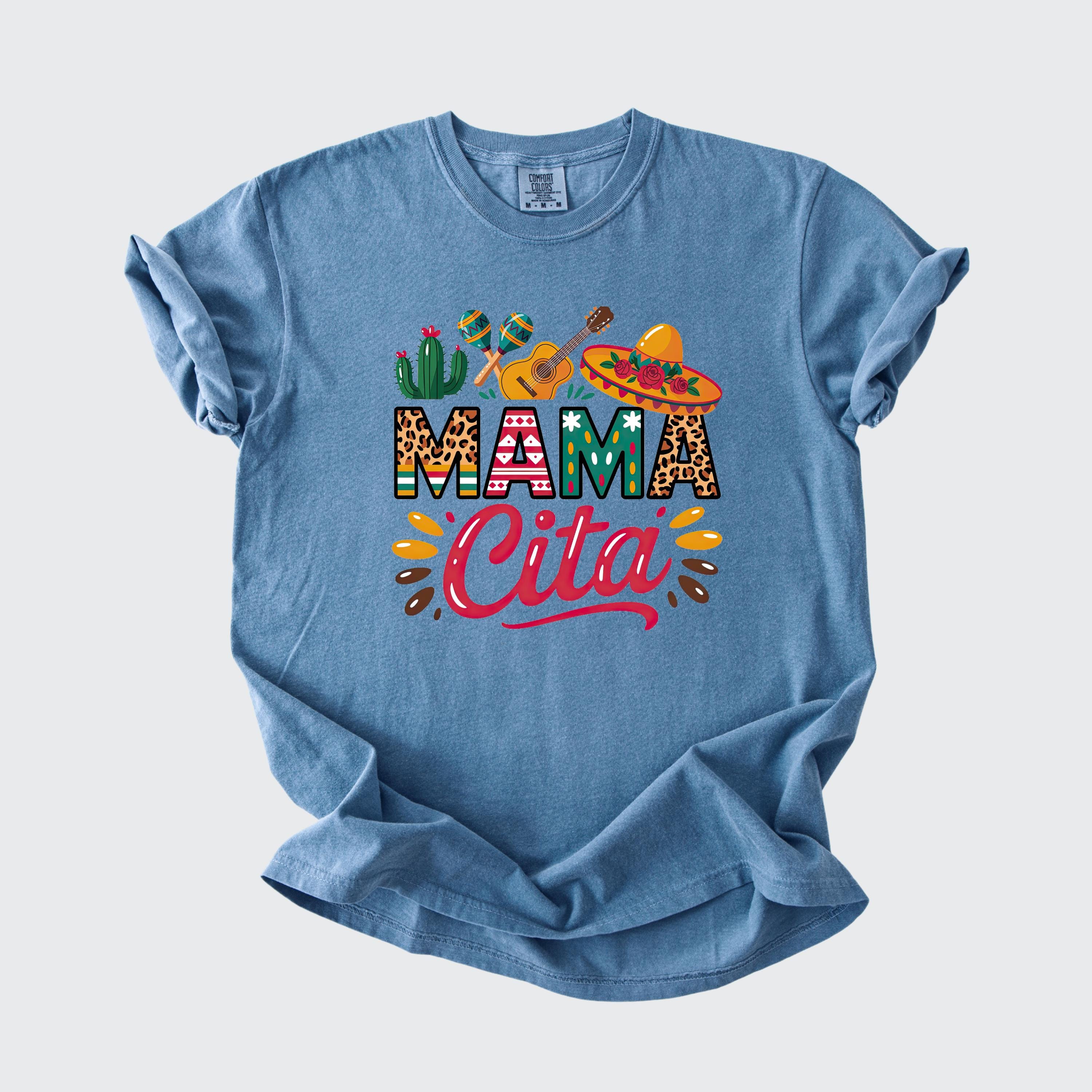 Celebrate in style with this fun comfort colors tee featuring a colorful “Mama Cita” design with fiesta-inspired details like a sombrero, guitar, cactus, and maracas. Perfect for Cinco de Mayo, taco nights, Mexican-themed parties, summer fiestas, or casual everyday wear.