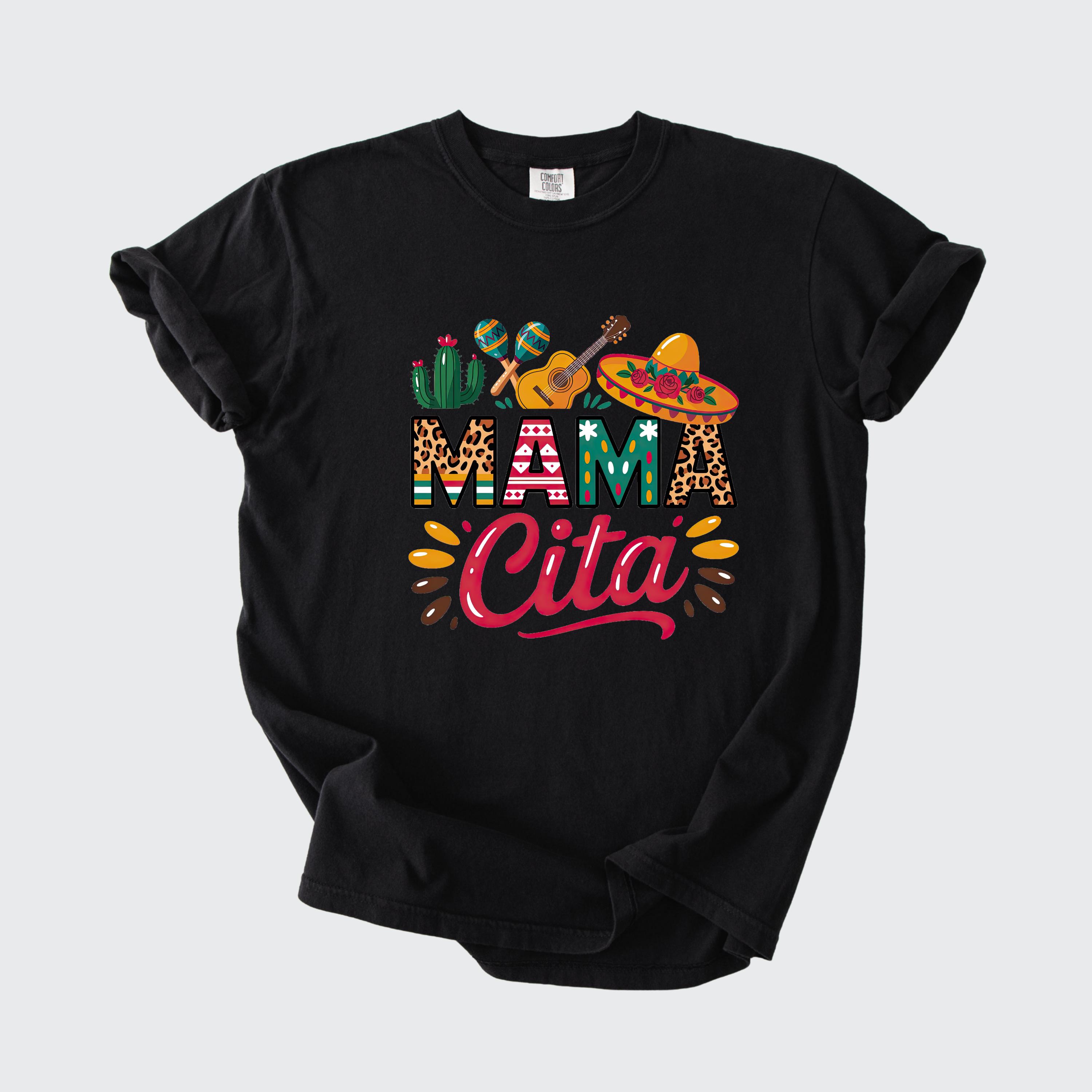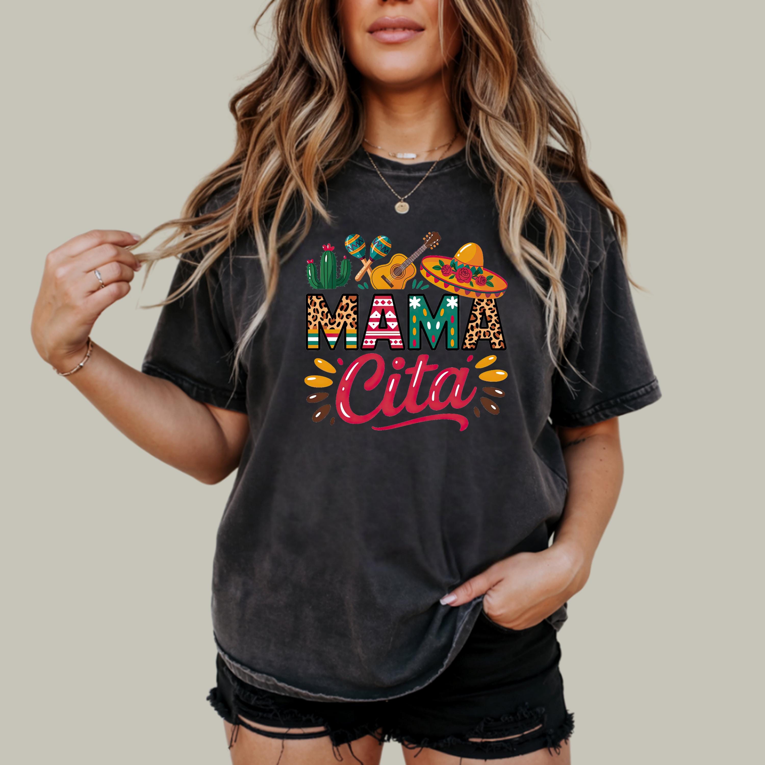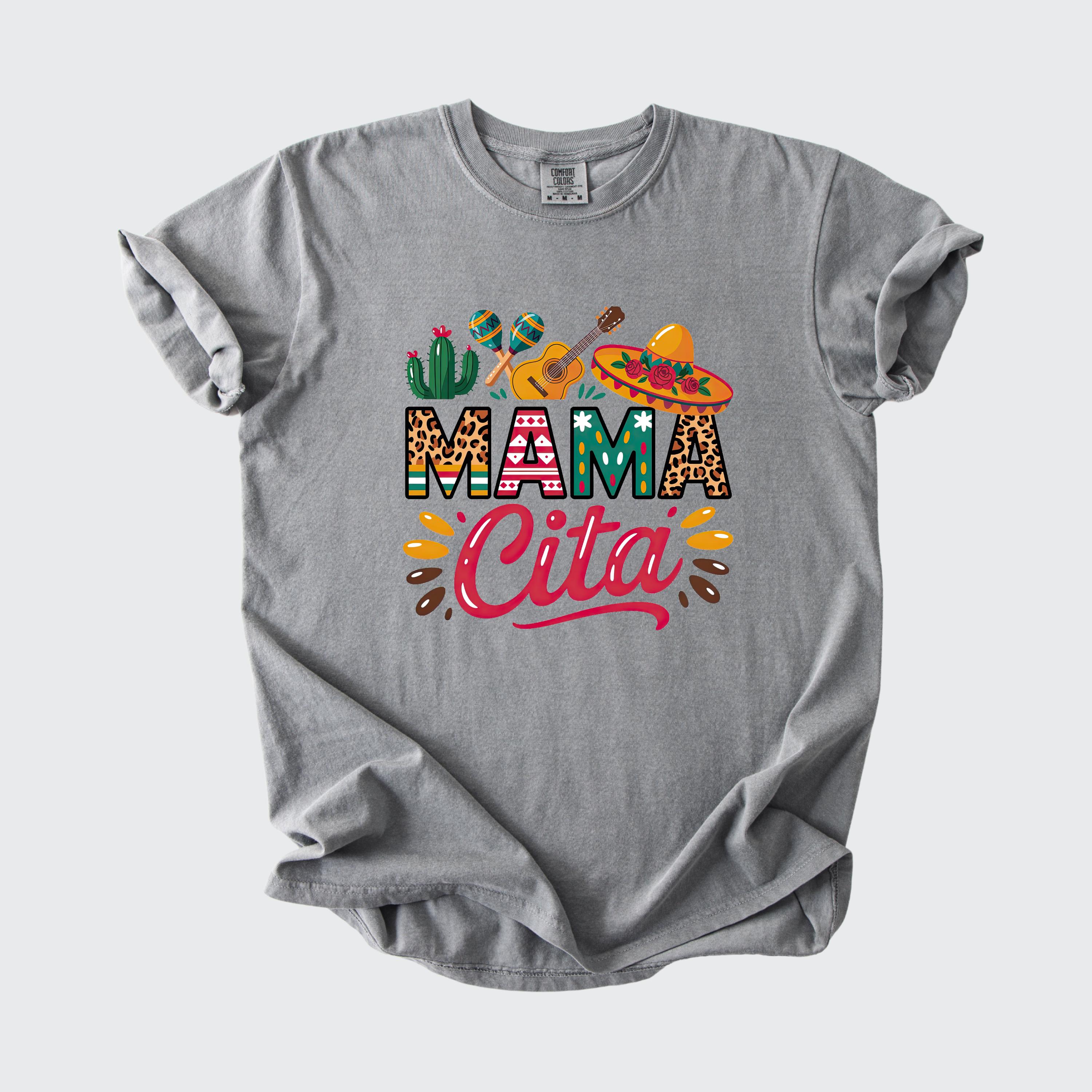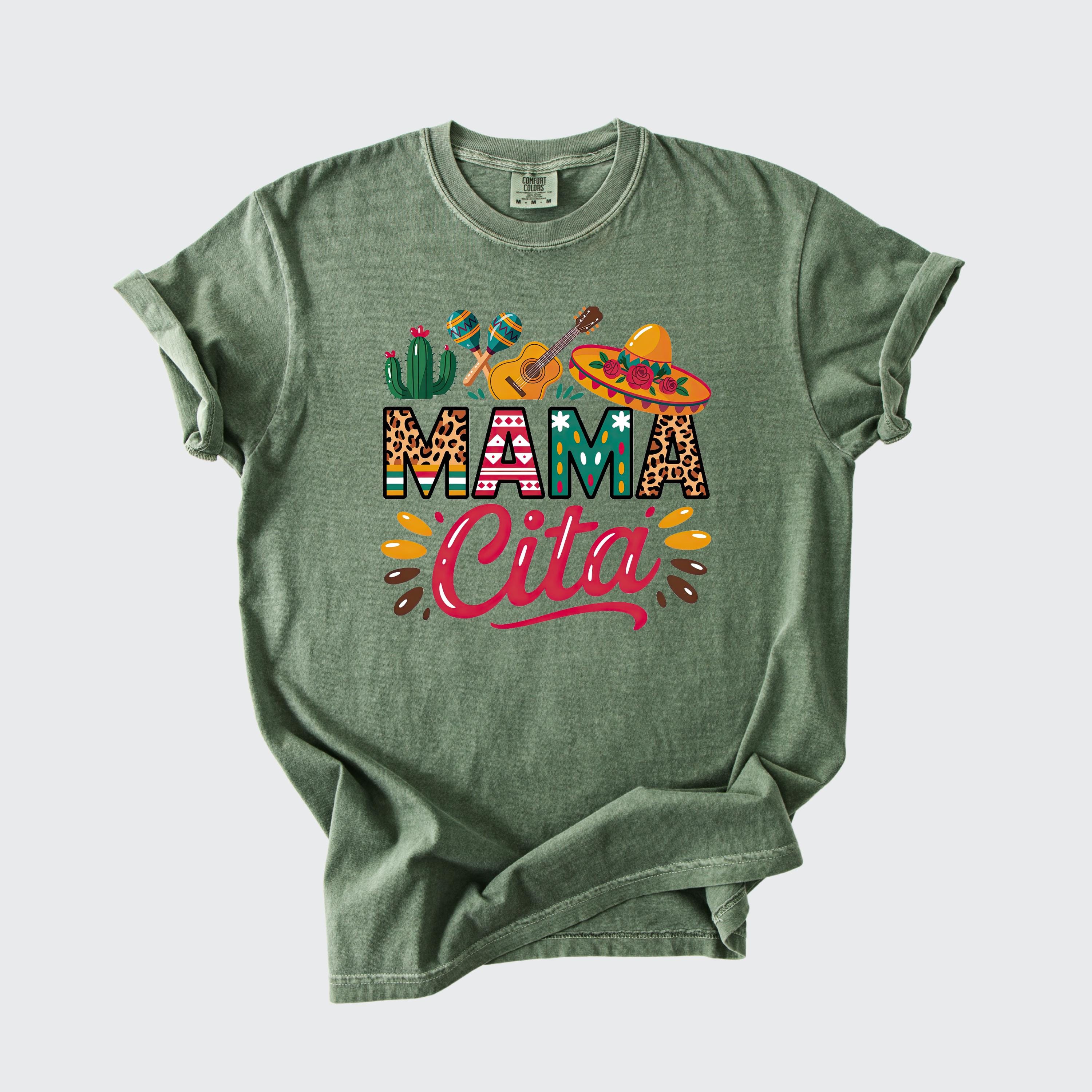 Celebrate in style with this fun comfort colors tee featuring a colorful “Mama Cita” design with fiesta-inspired details like a sombrero, guitar, cactus, and maracas. Perfect for Cinco de Mayo, taco nights, Mexican-themed parties, summer fiestas, or casual everyday wear.